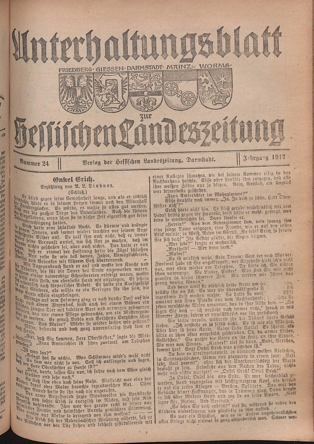 Hessische Landes-Zeitung. Unterhaltungsblatt