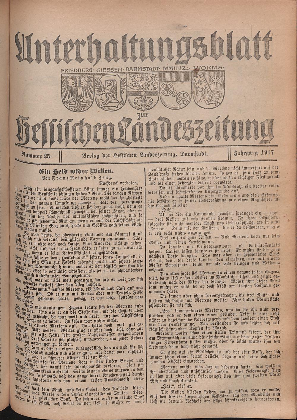 Hessische Landes-Zeitung. Unterhaltungsb...