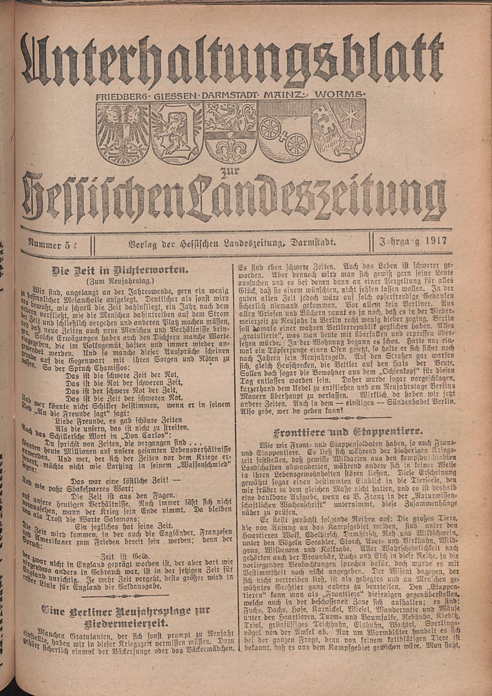 Hessische Landes-Zeitung. Unterhaltungsblatt