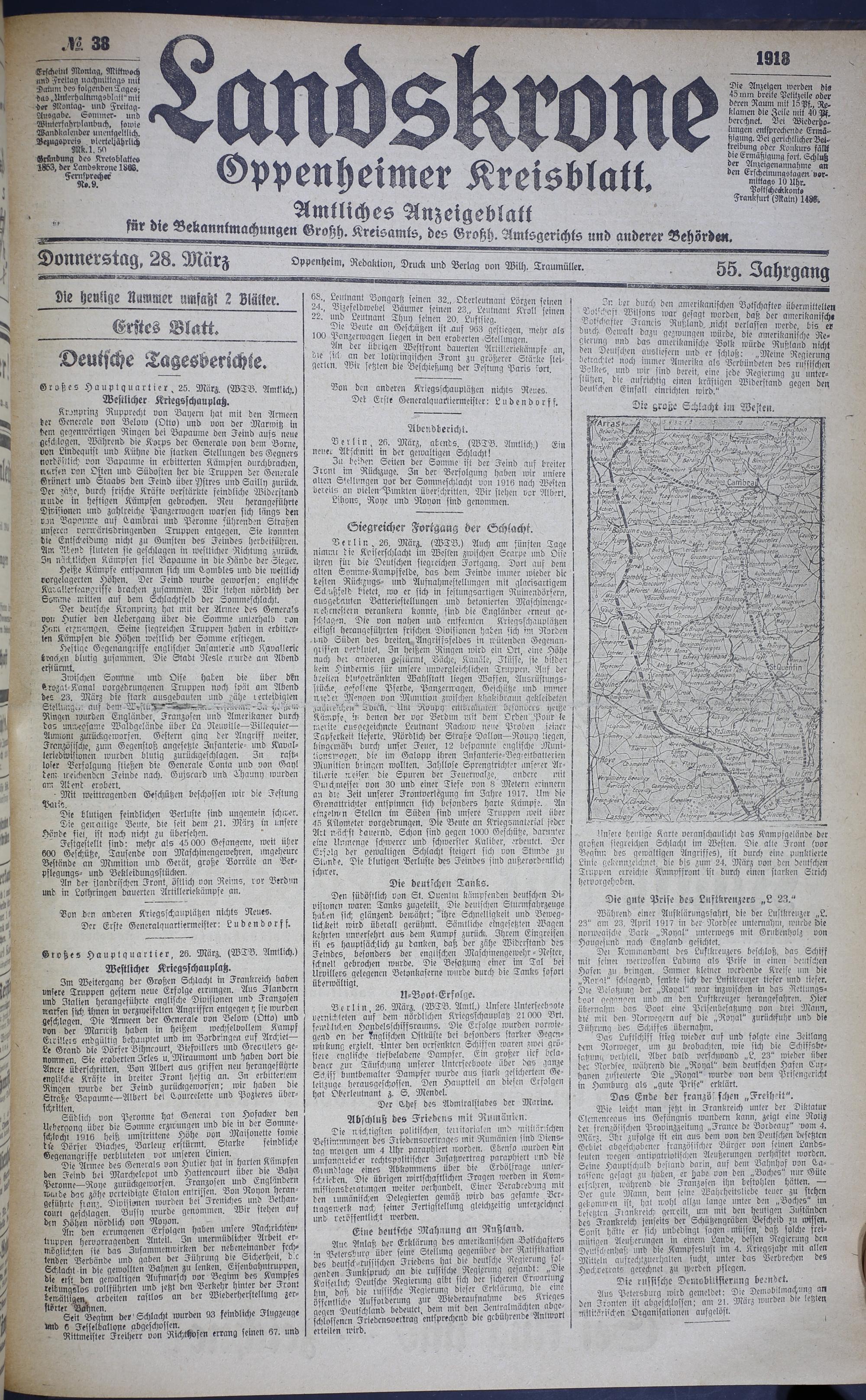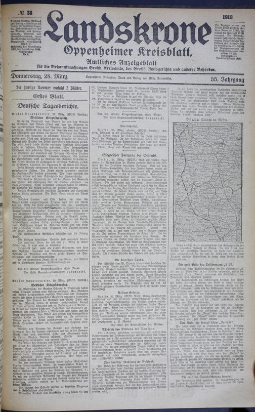 (28.3.1918) 38. = Nr. 38 Donnerstagsausgabe - erstes Blatt