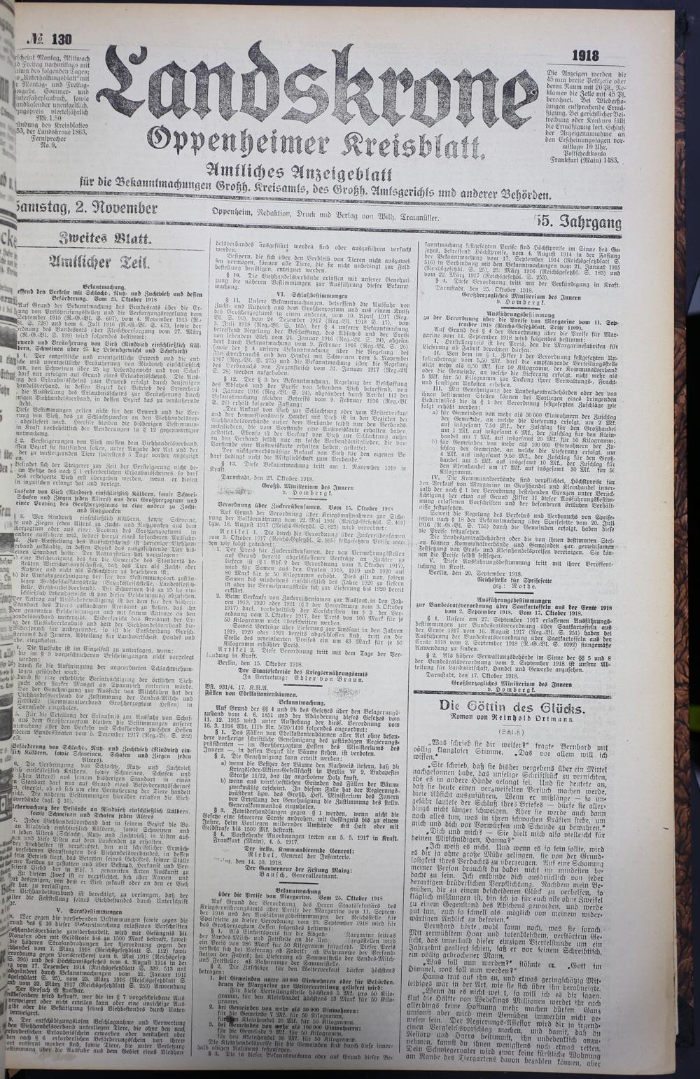 (2.11.1918) 130. = Nr. 130 Samstagsausgabe - zweites Blatt