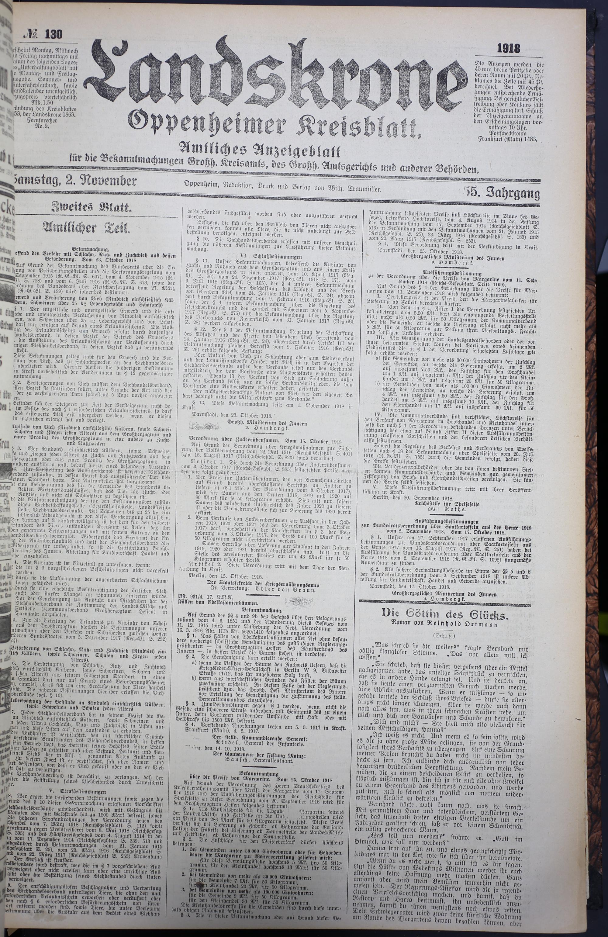 130 (2.11.1918) = Nr. 130 Samstagsausgabe - zweites Blatt