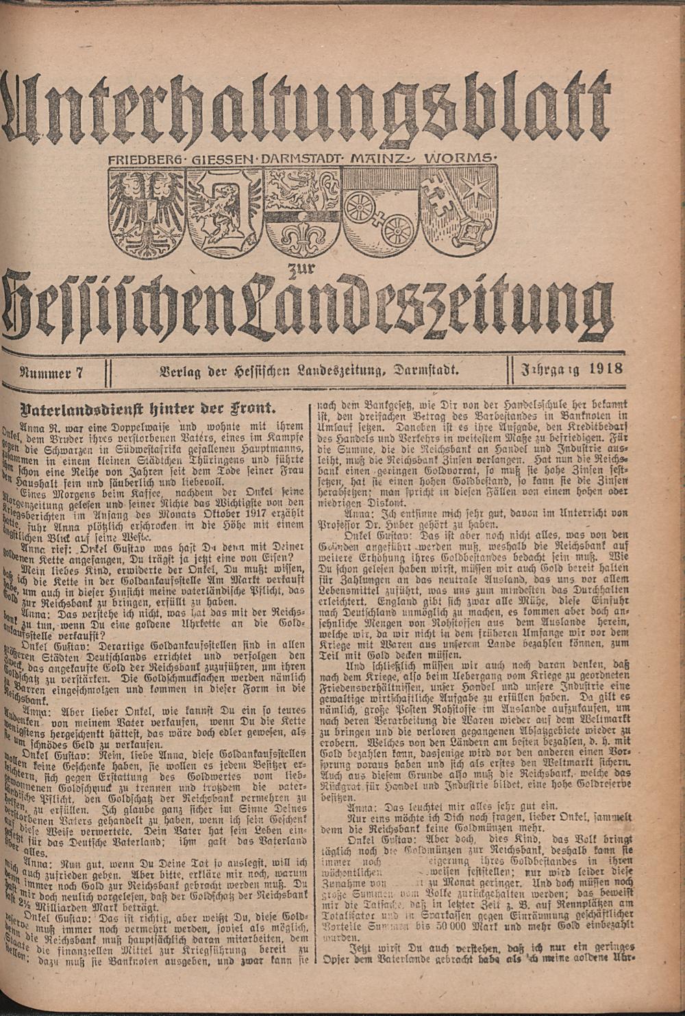 Hessische Landes-Zeitung. Unterhaltungsblatt