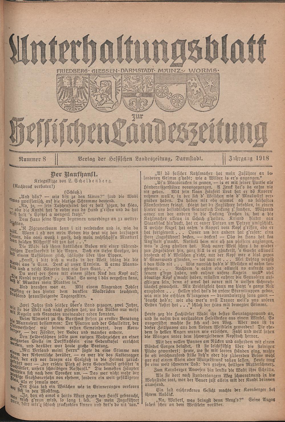 Hessische Landes-Zeitung. Unterhaltungsblatt