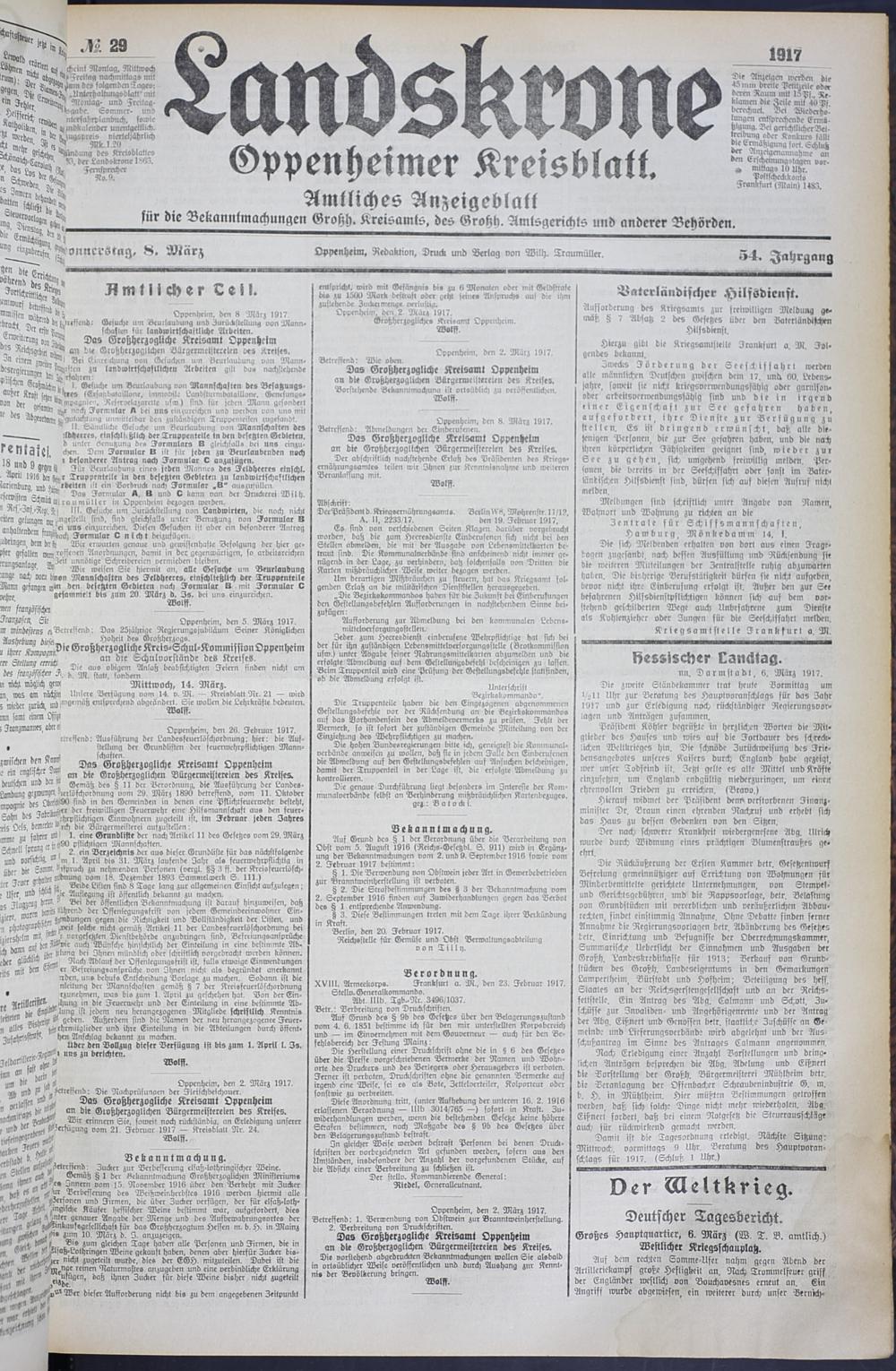 Landskrone. 1914-1918