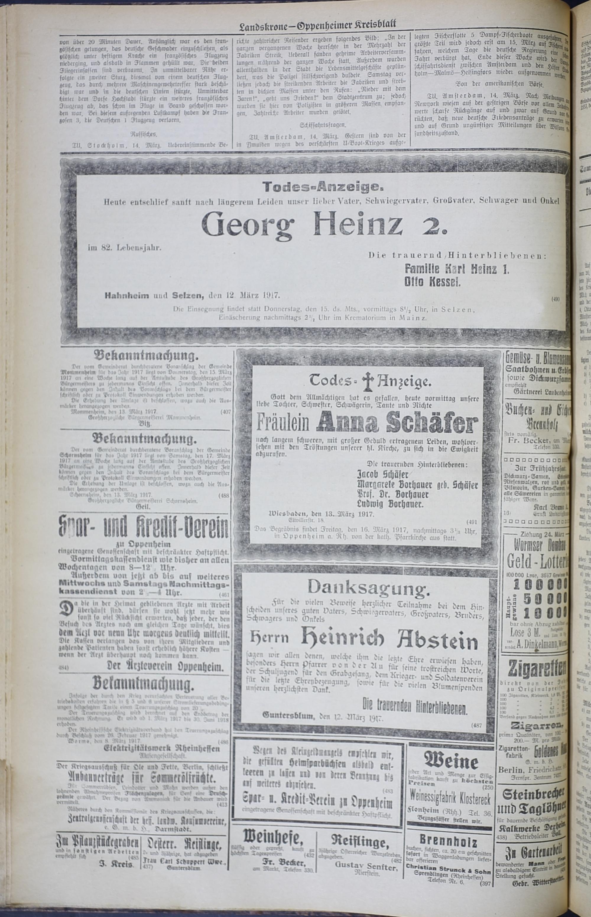 Landskrone. 1914-1918