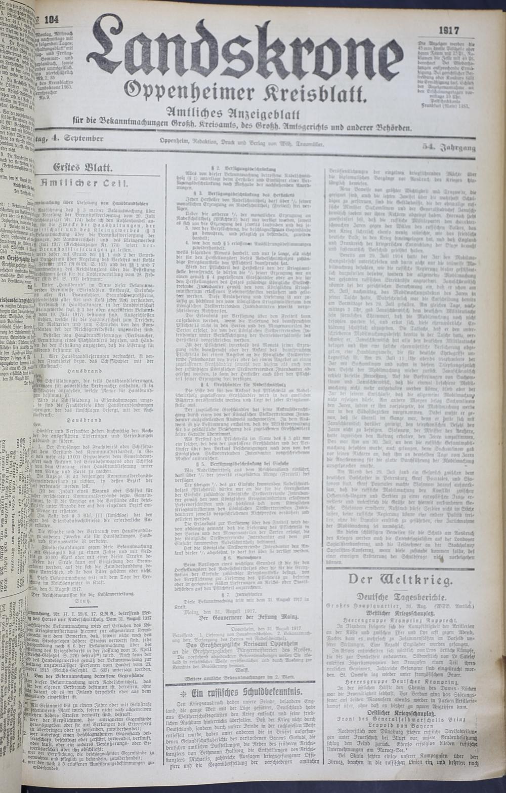 Der Erste Weltkrieg im Spiegel hessischer Regionalzeitungen