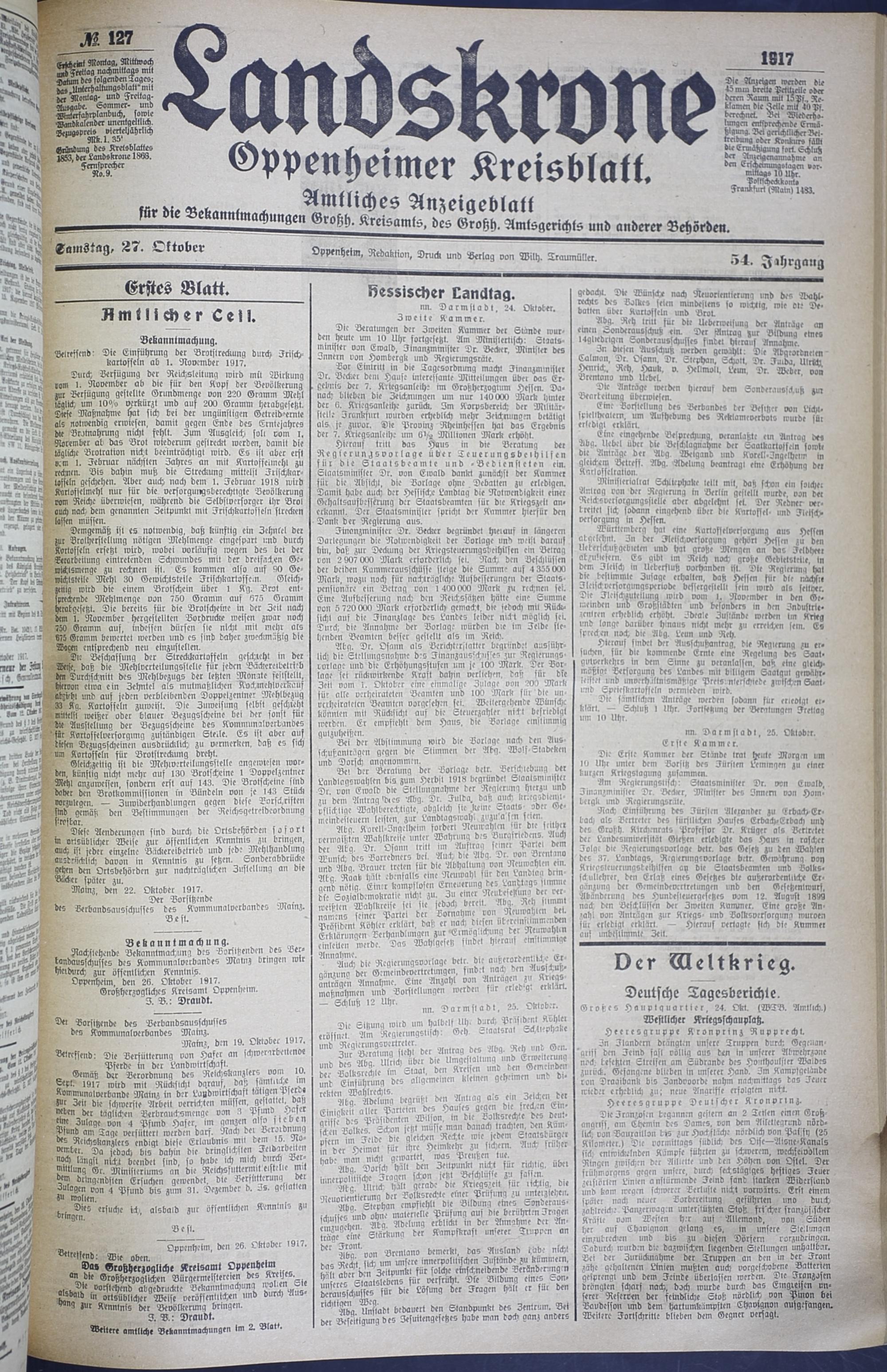 Der Erste Weltkrieg im Spiegel hessischer Regionalzeitungen