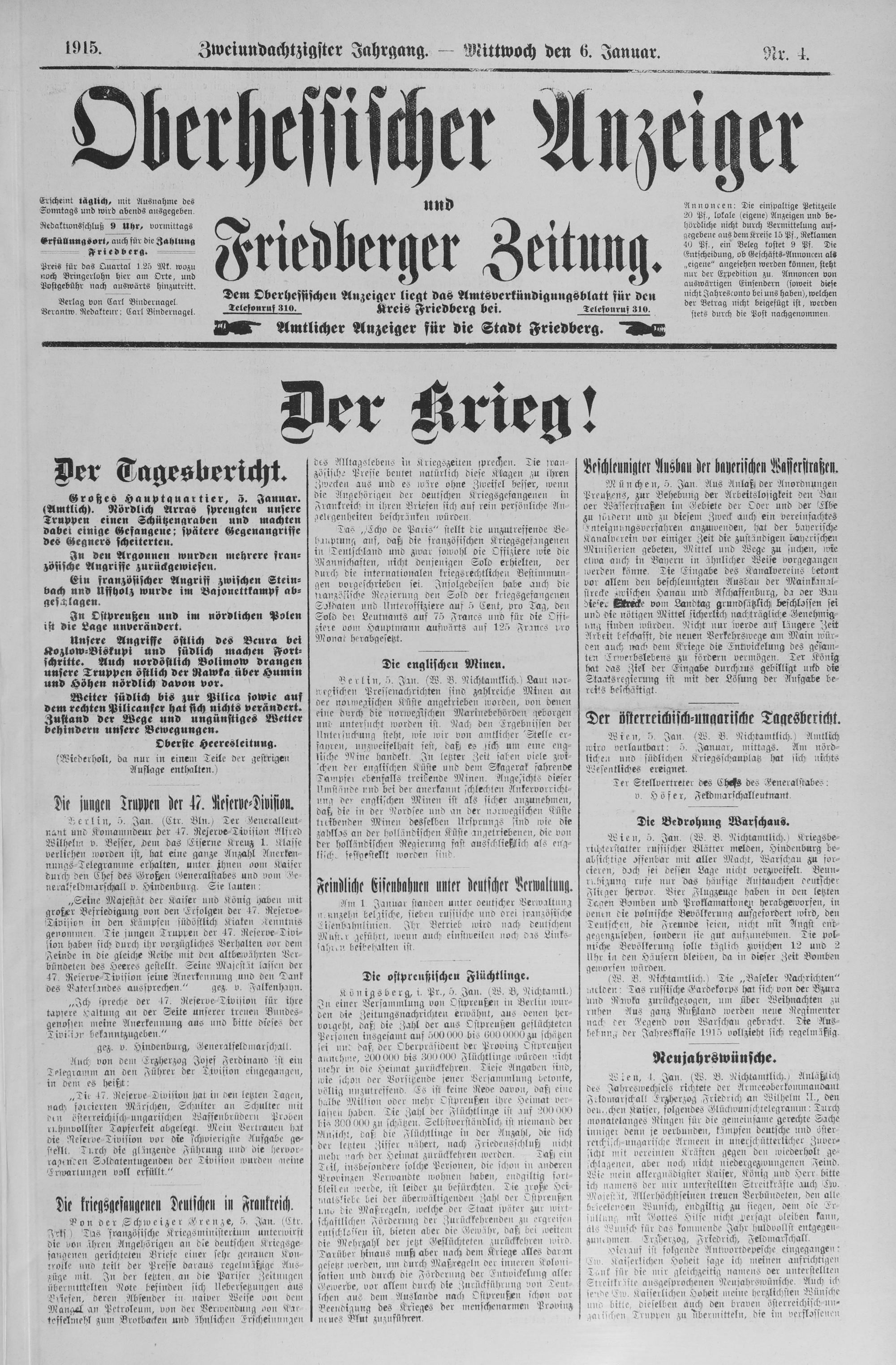 Oberhessischer Anzeiger. 1899-1933