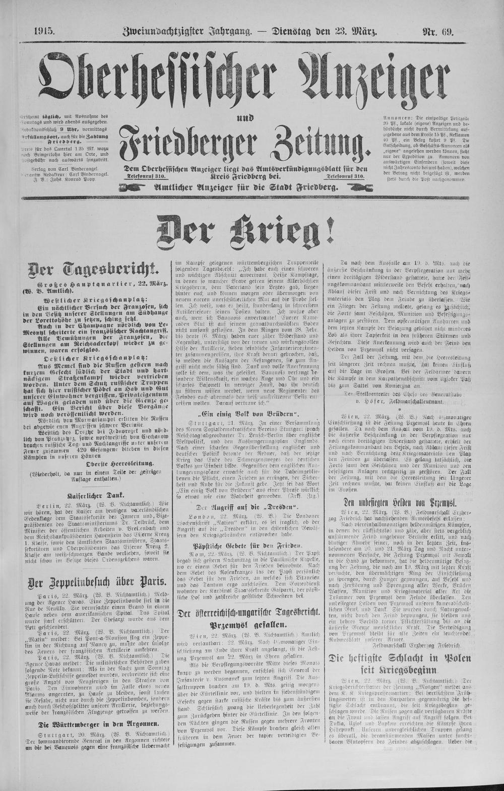 Oberhessischer Anzeiger. 1899-1933