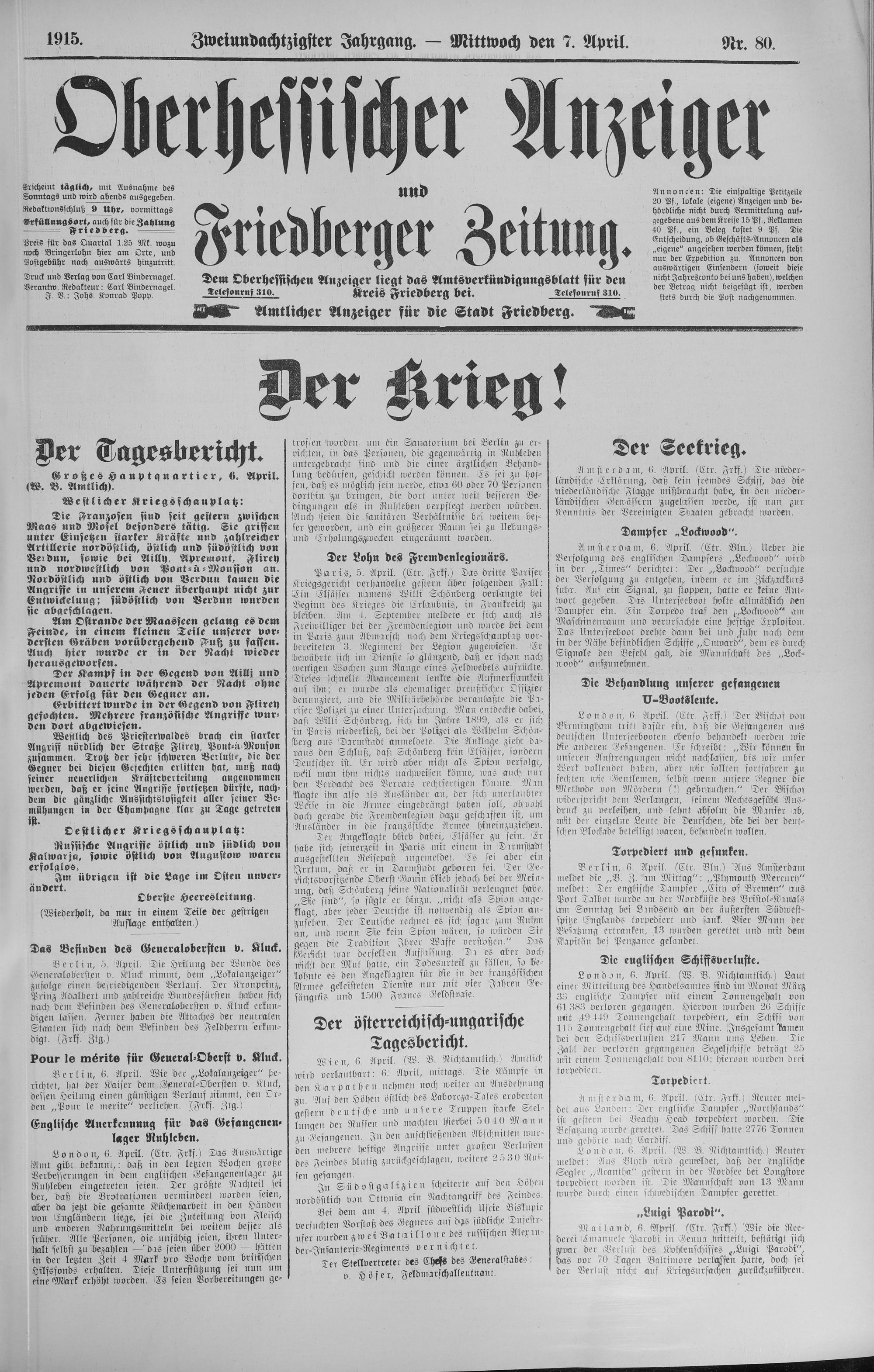 Oberhessischer Anzeiger. 1899-1933