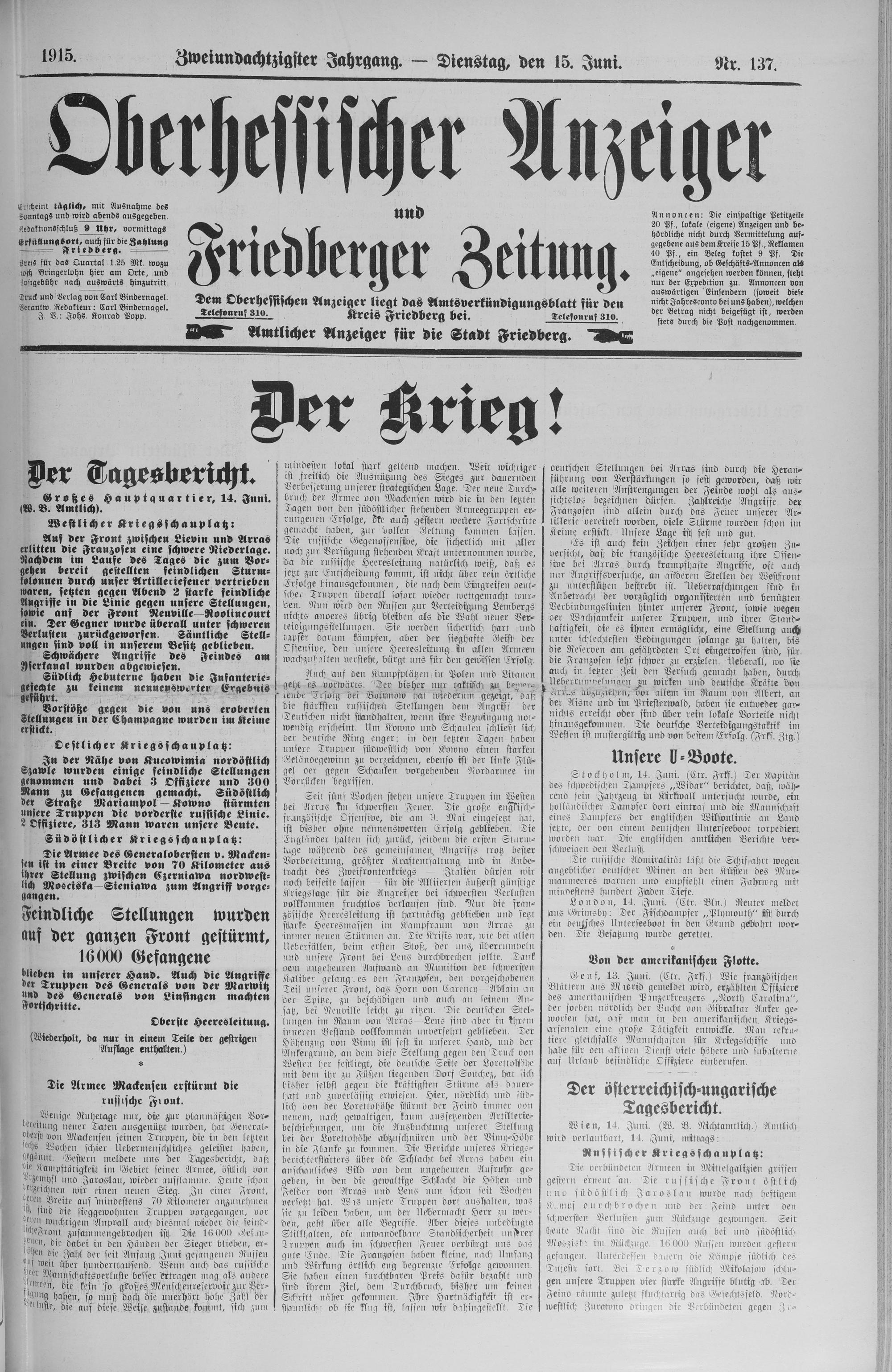 Oberhessischer Anzeiger. 1899-1933