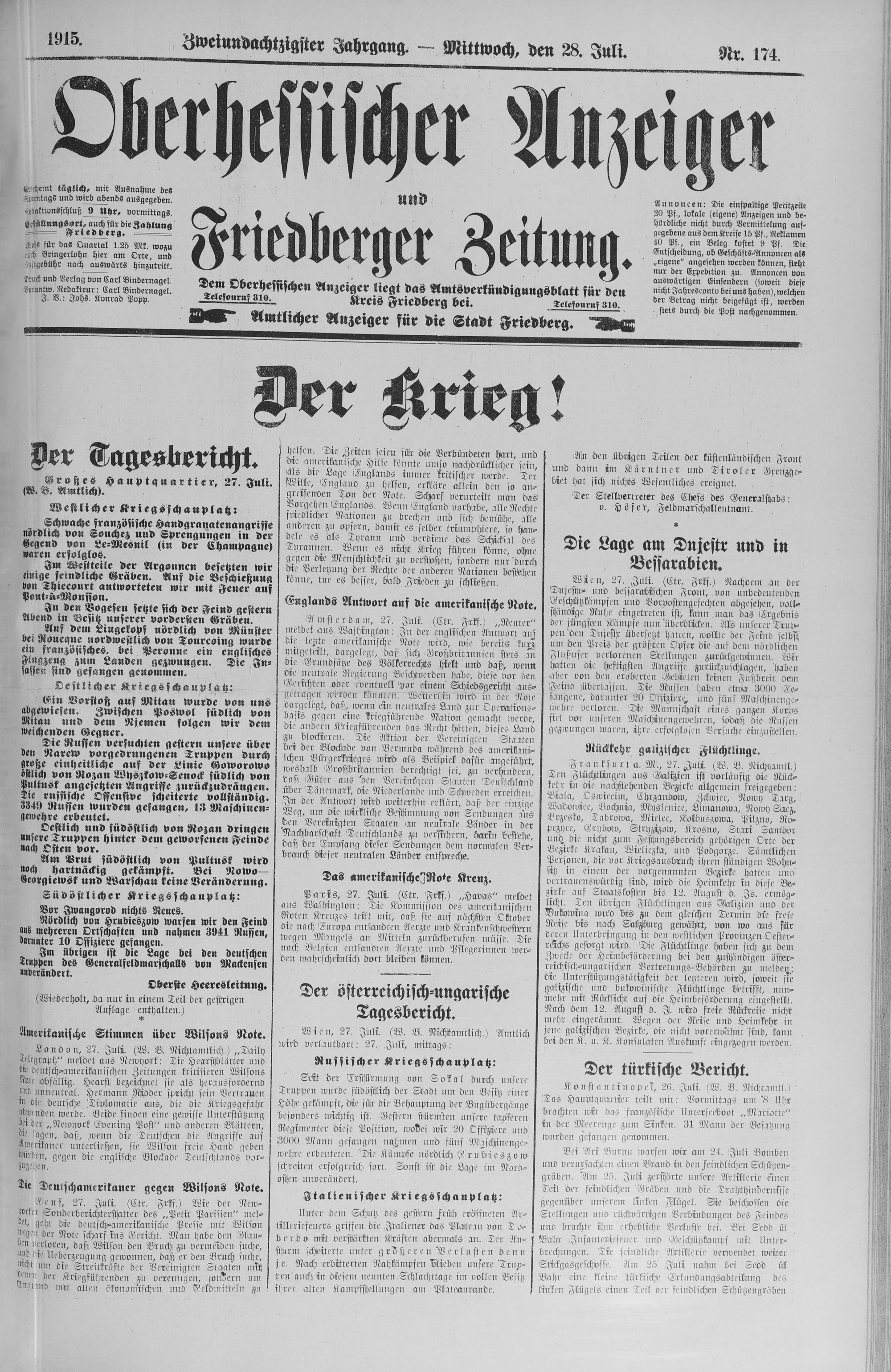 Oberhessischer Anzeiger. 1899-1933