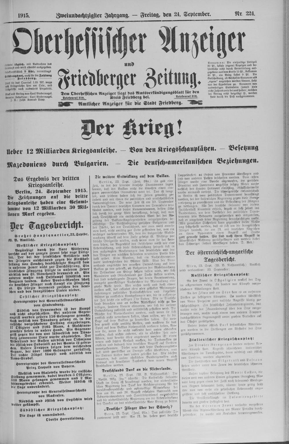 Oberhessischer Anzeiger. 1899-1933