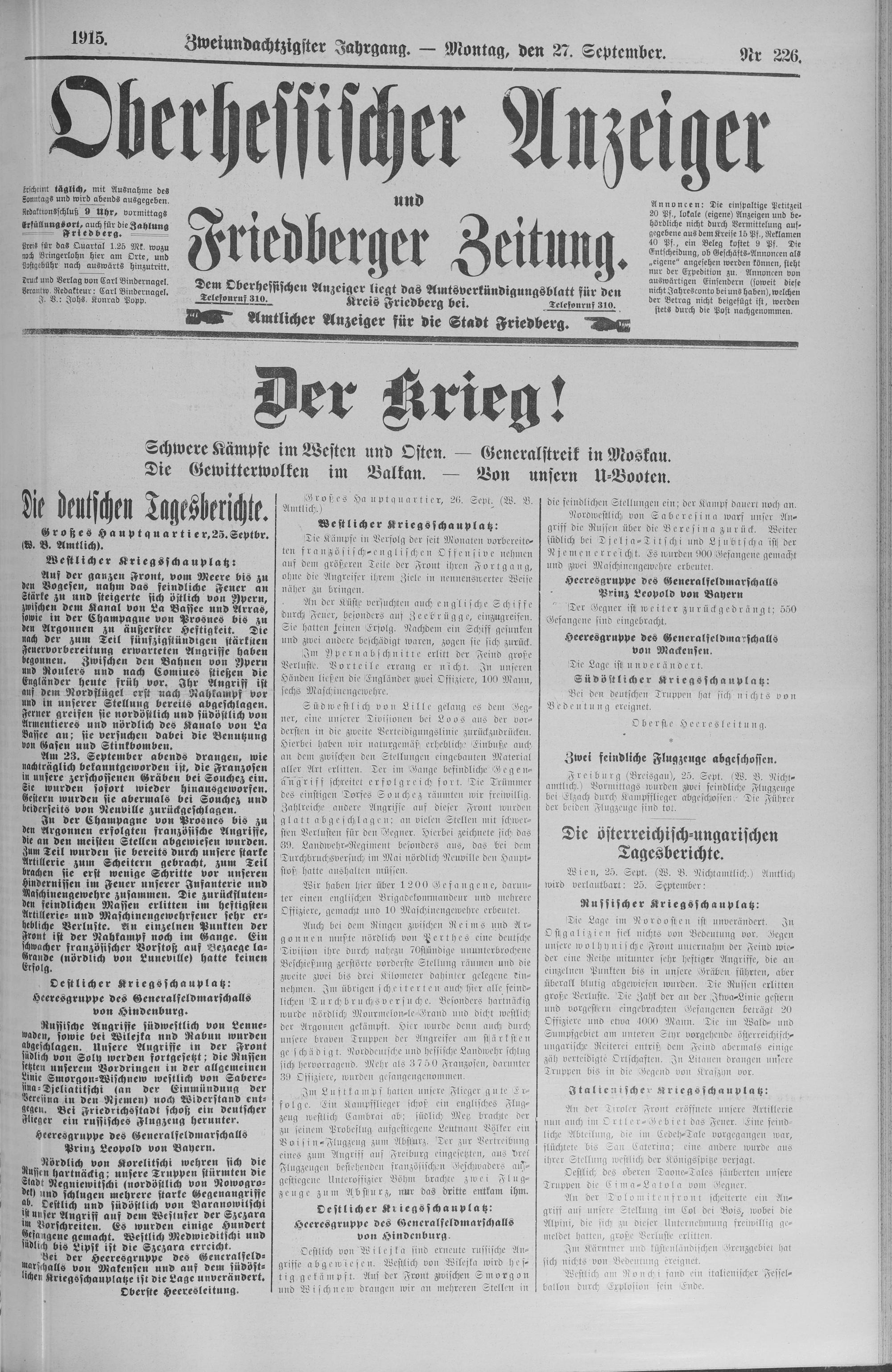 Oberhessischer Anzeiger. 1899-1933