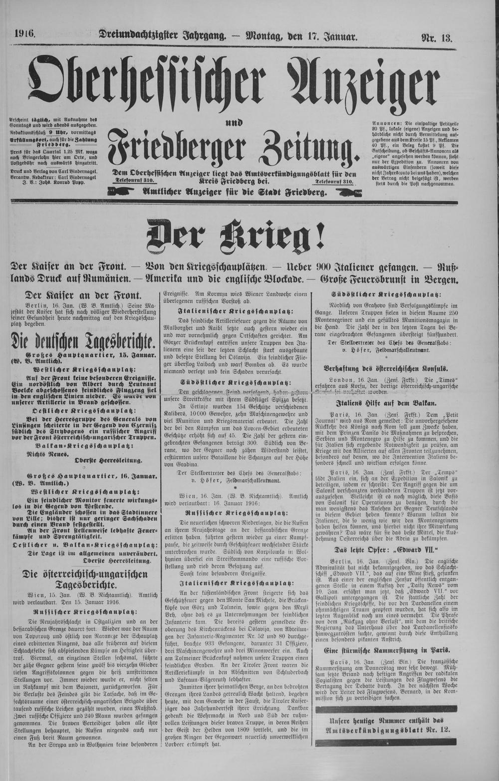 Oberhessischer Anzeiger. 1899-1933