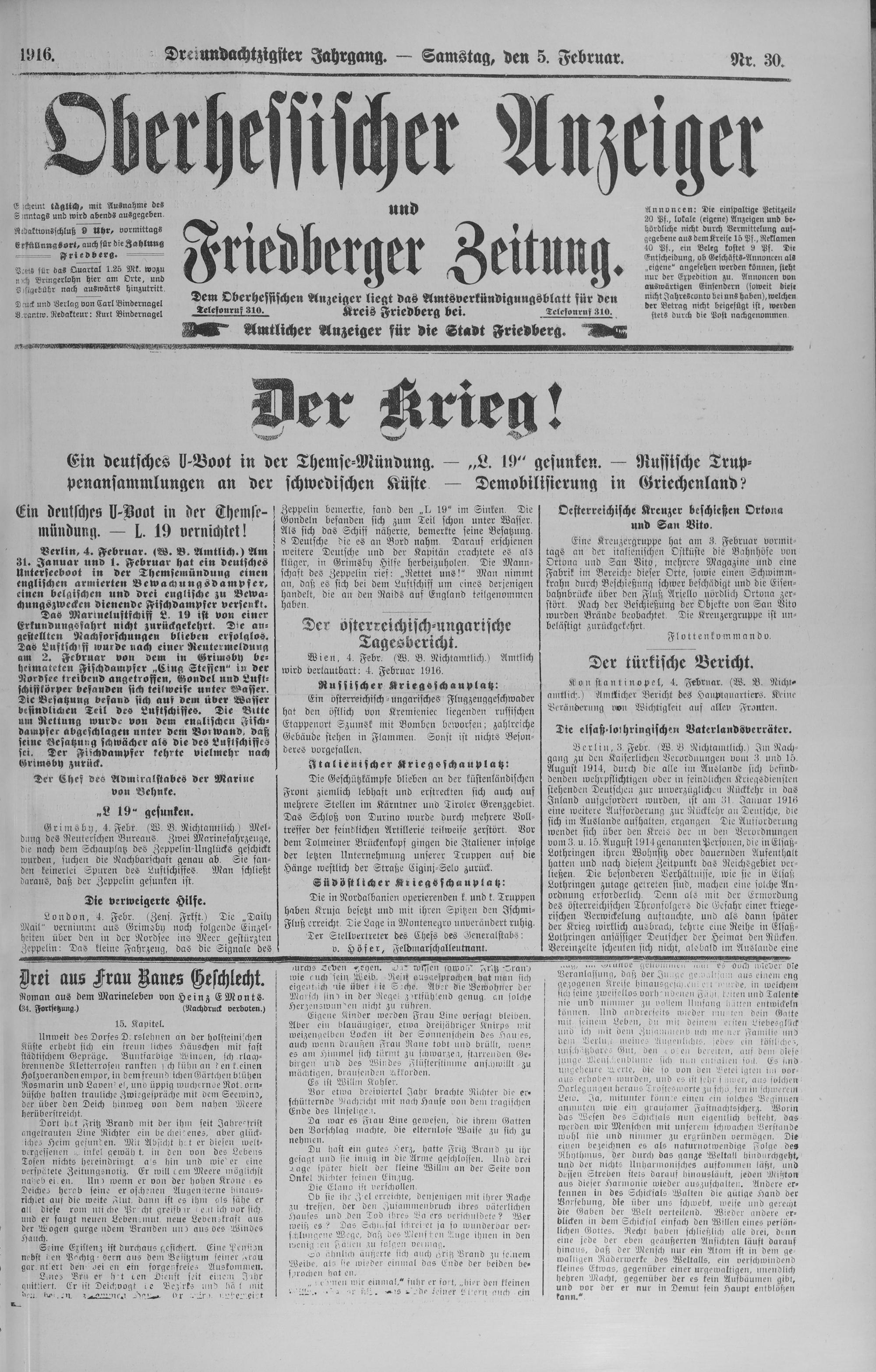 Oberhessischer Anzeiger. 1899-1933