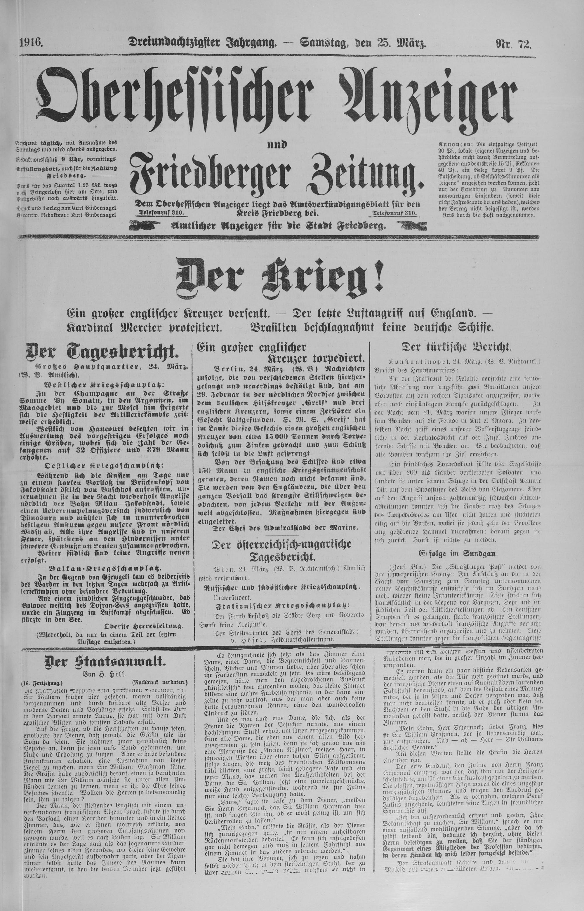 Oberhessischer Anzeiger. 1899-1933