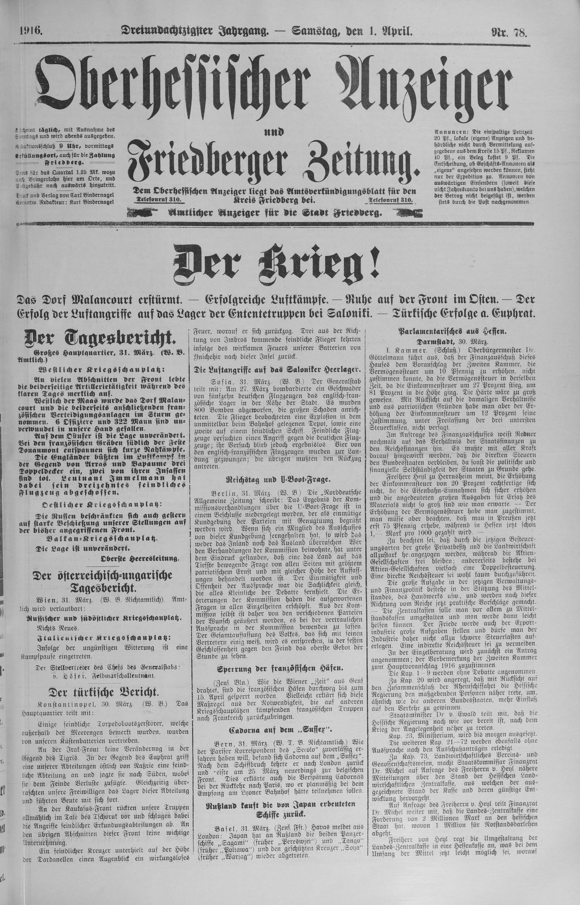 Oberhessischer Anzeiger. 1899-1933