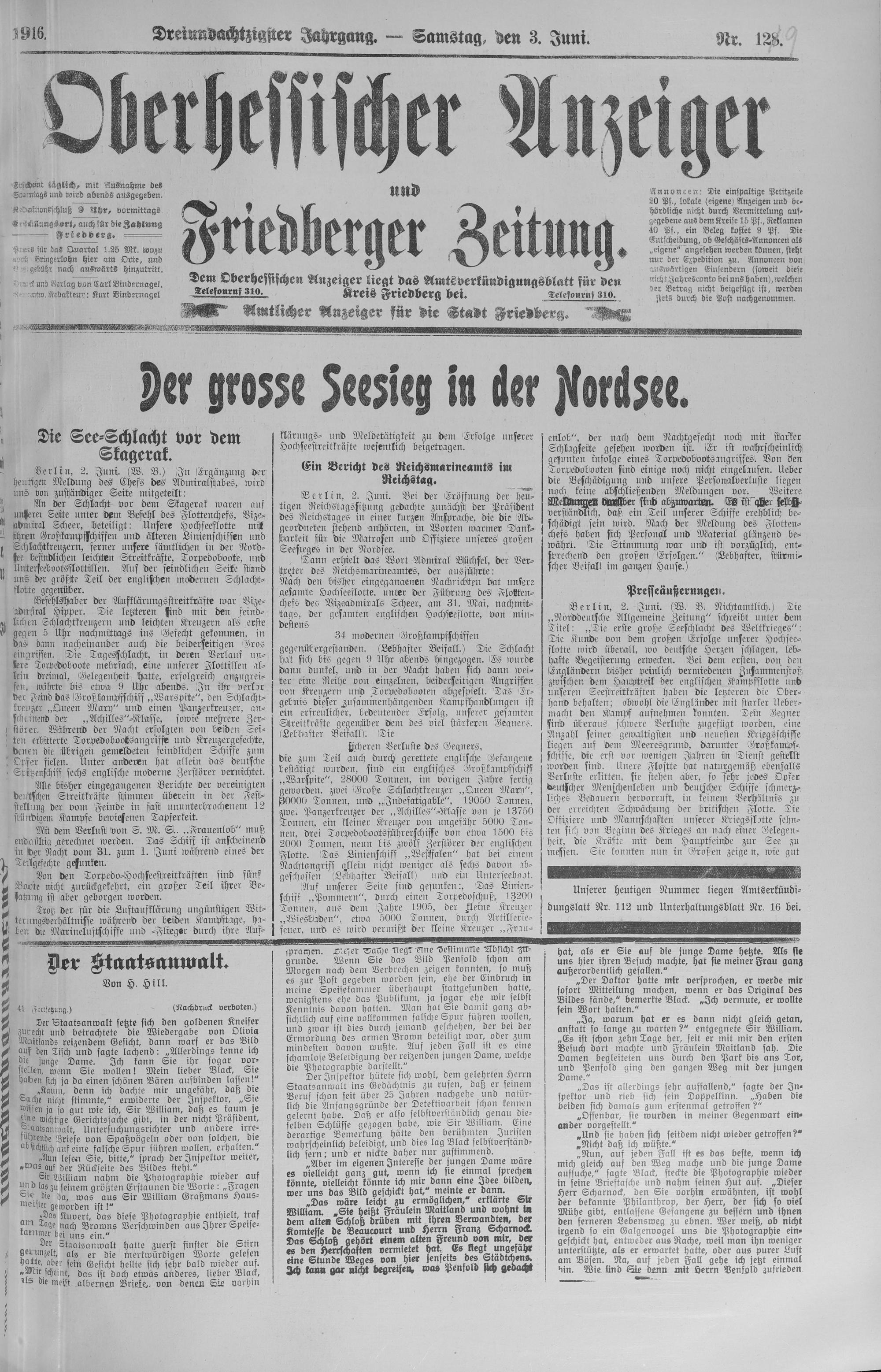 Oberhessischer Anzeiger. 1899-1933