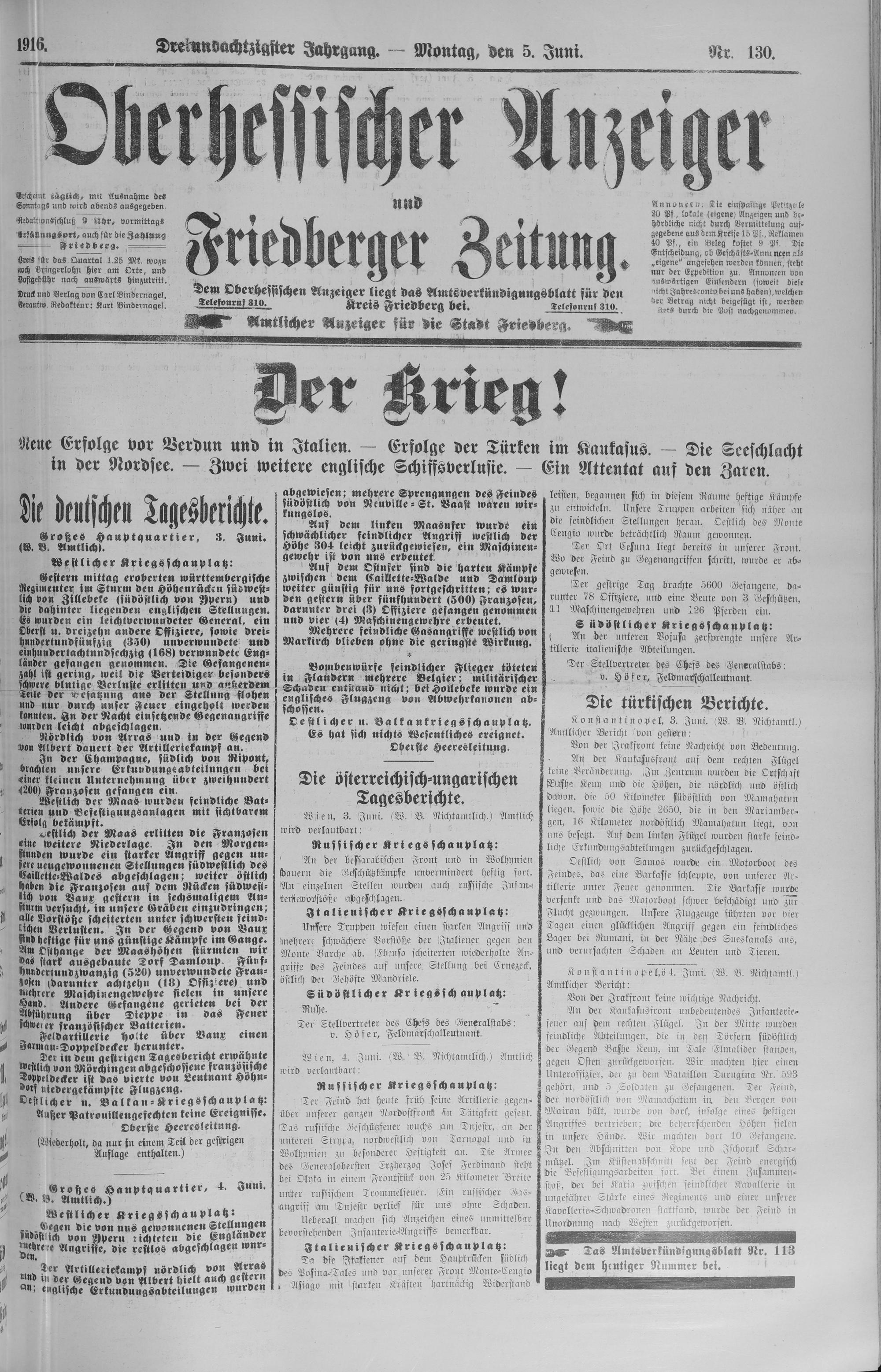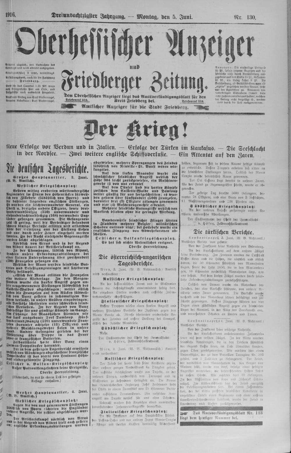 Oberhessischer Anzeiger. 1899-1933