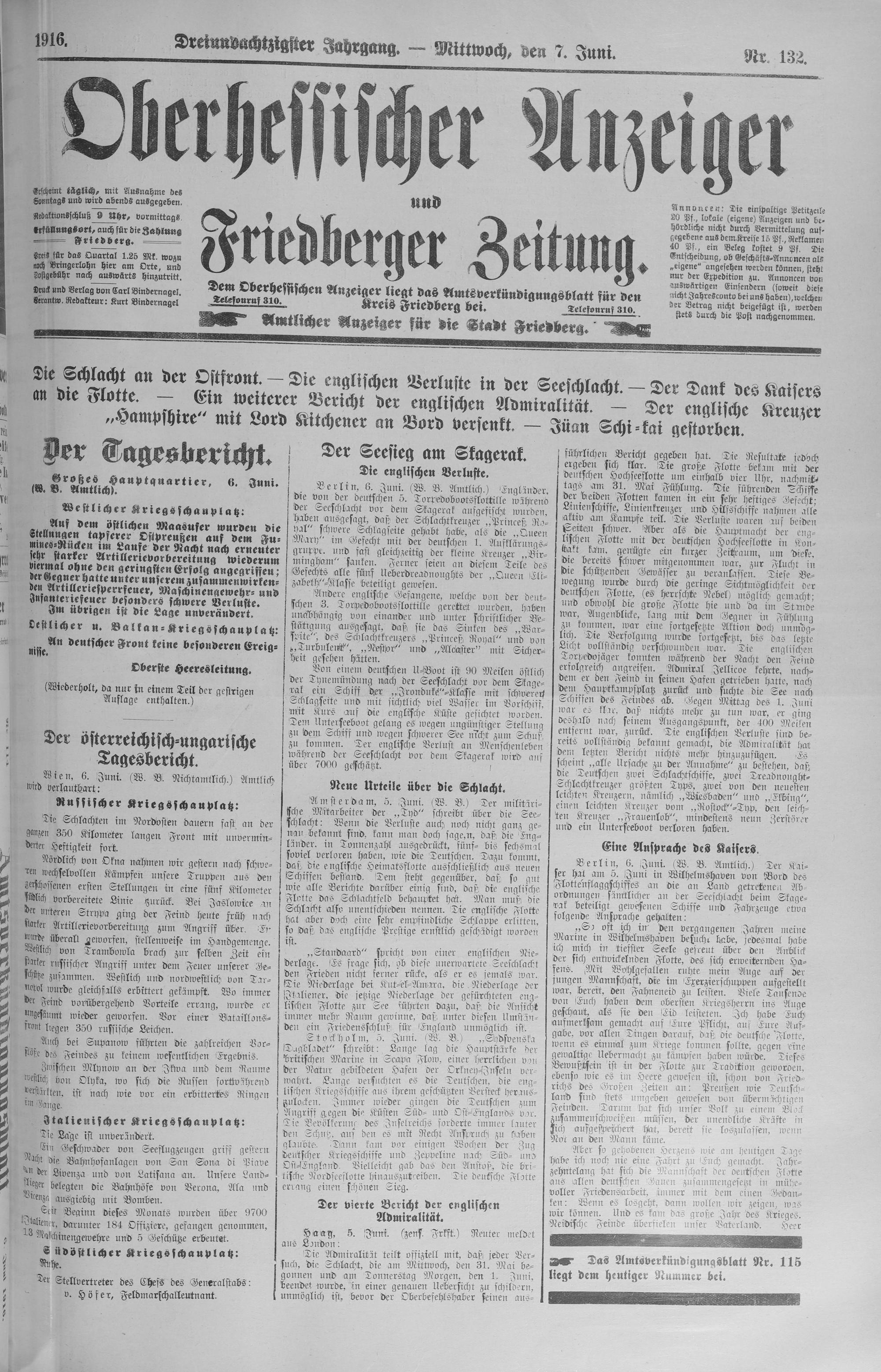 Oberhessischer Anzeiger. 1899-1933