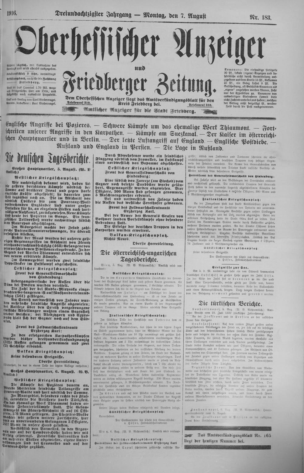 Oberhessischer Anzeiger. 1899-1933