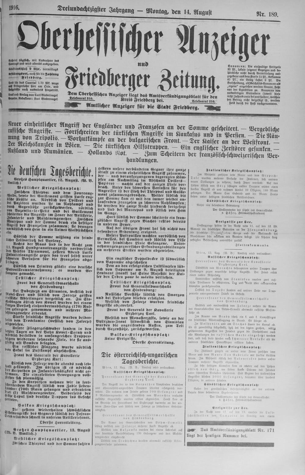 Oberhessischer Anzeiger. 1899-1933
