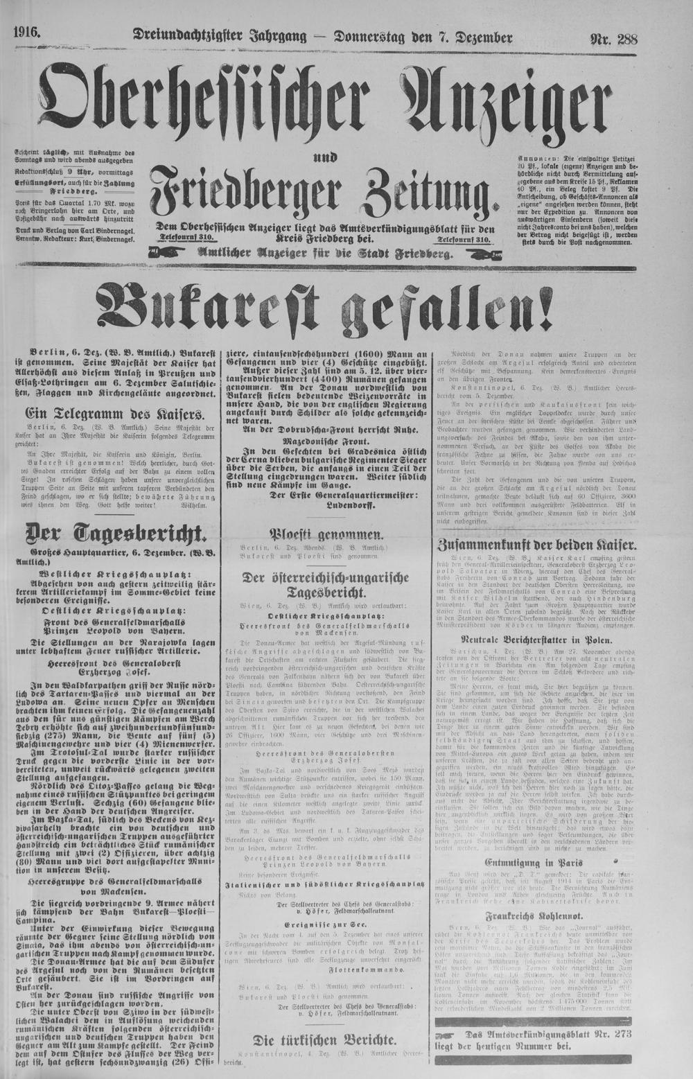 Oberhessischer Anzeiger. 1899-1933
