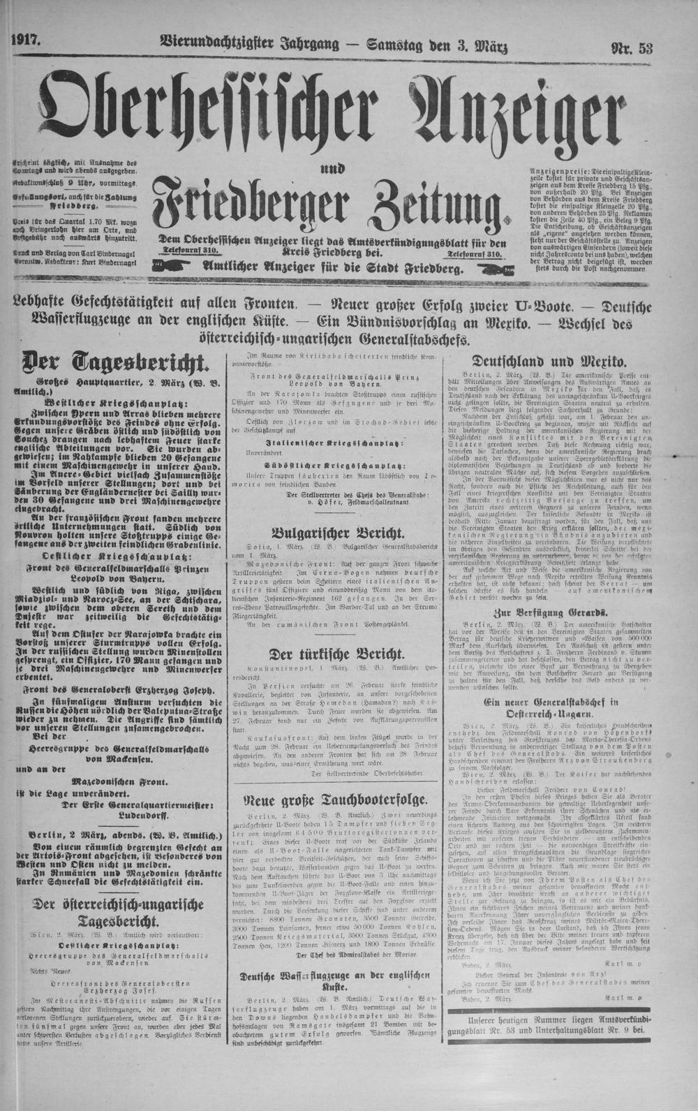 Oberhessischer Anzeiger. 1899-1933