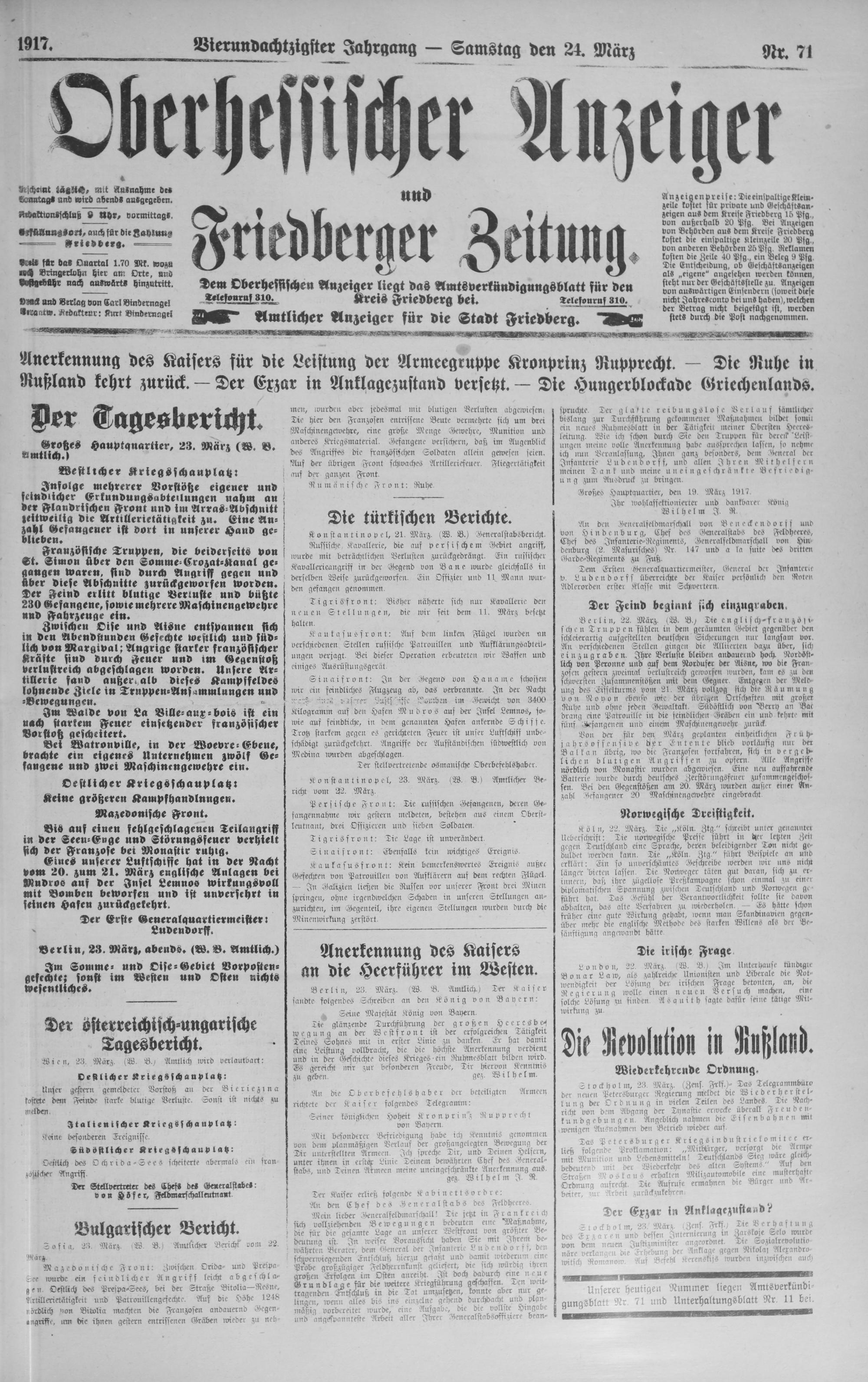 Oberhessischer Anzeiger. 1899-1933
