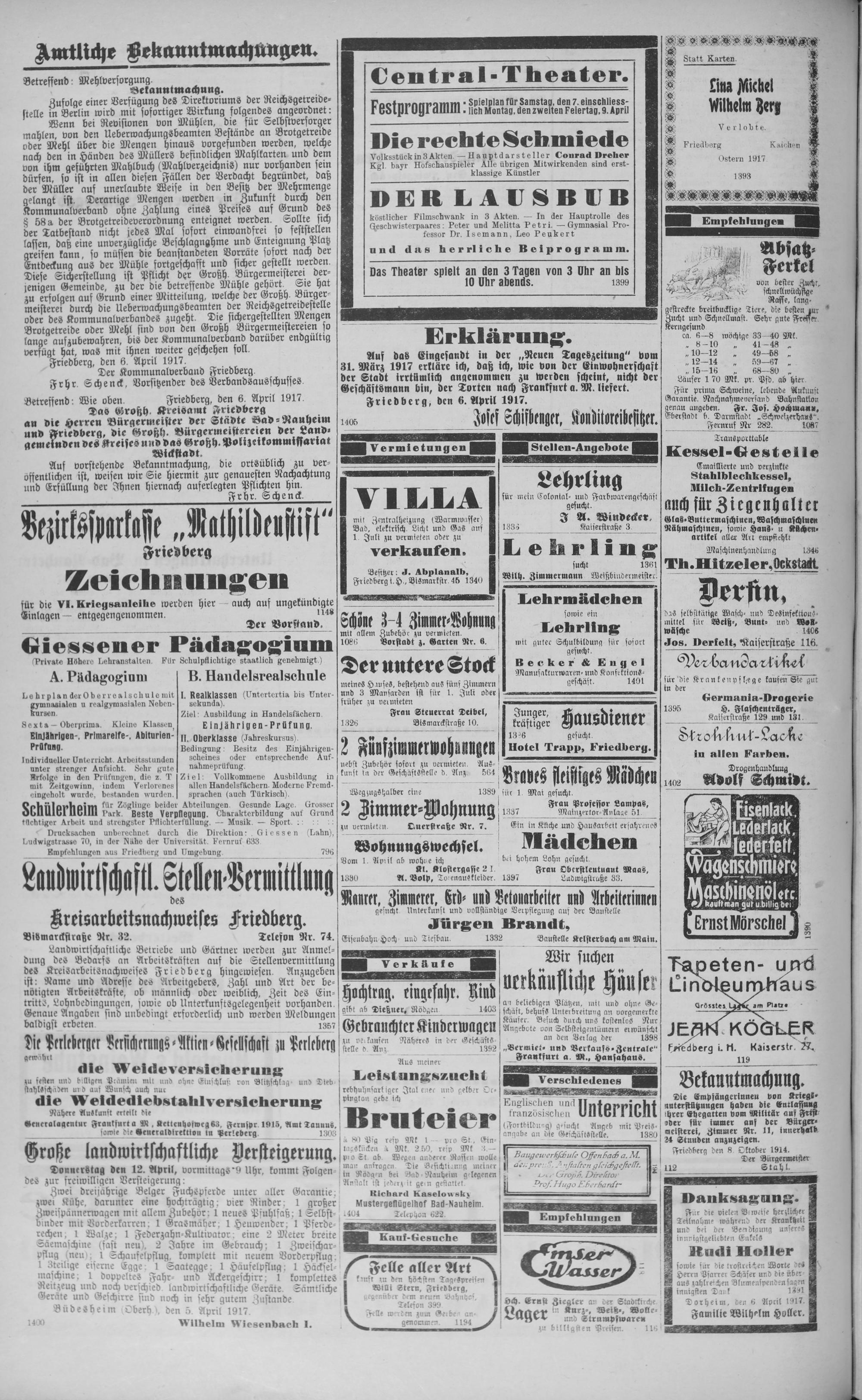 Oberhessischer Anzeiger. 1899-1933