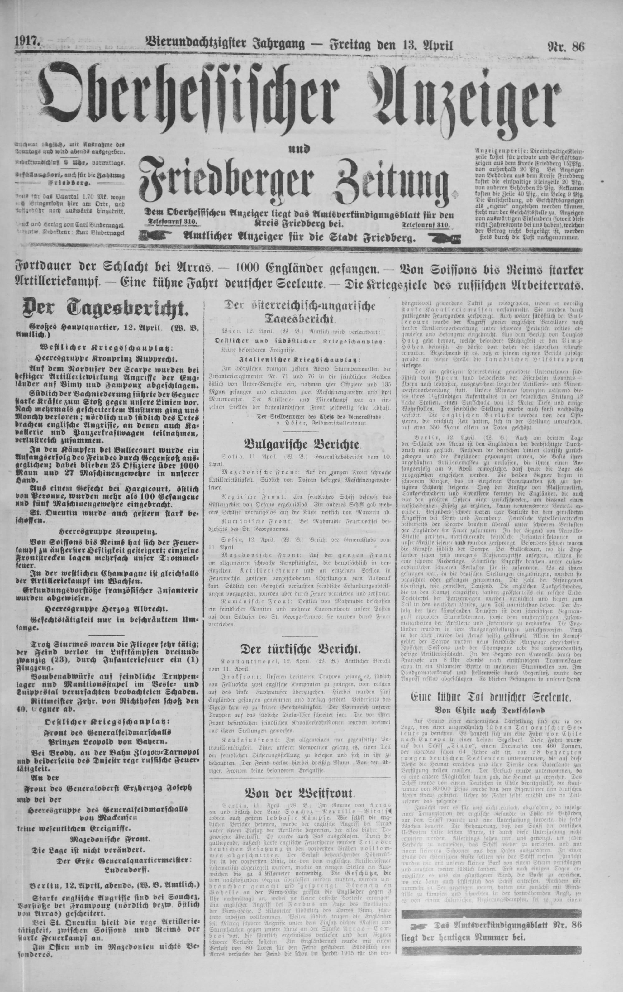 Oberhessischer Anzeiger. 1899-1933