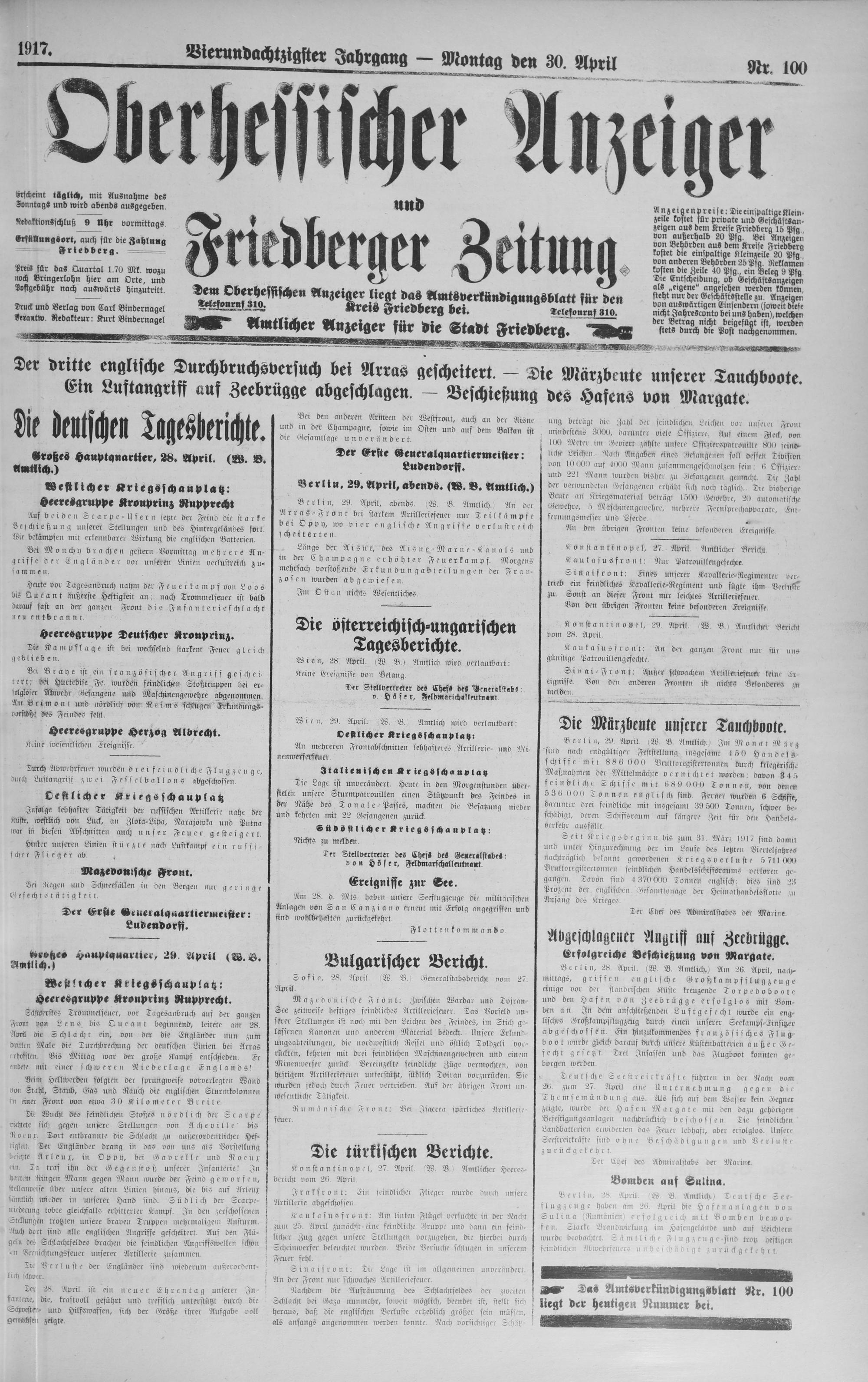 Oberhessischer Anzeiger. 1899-1933