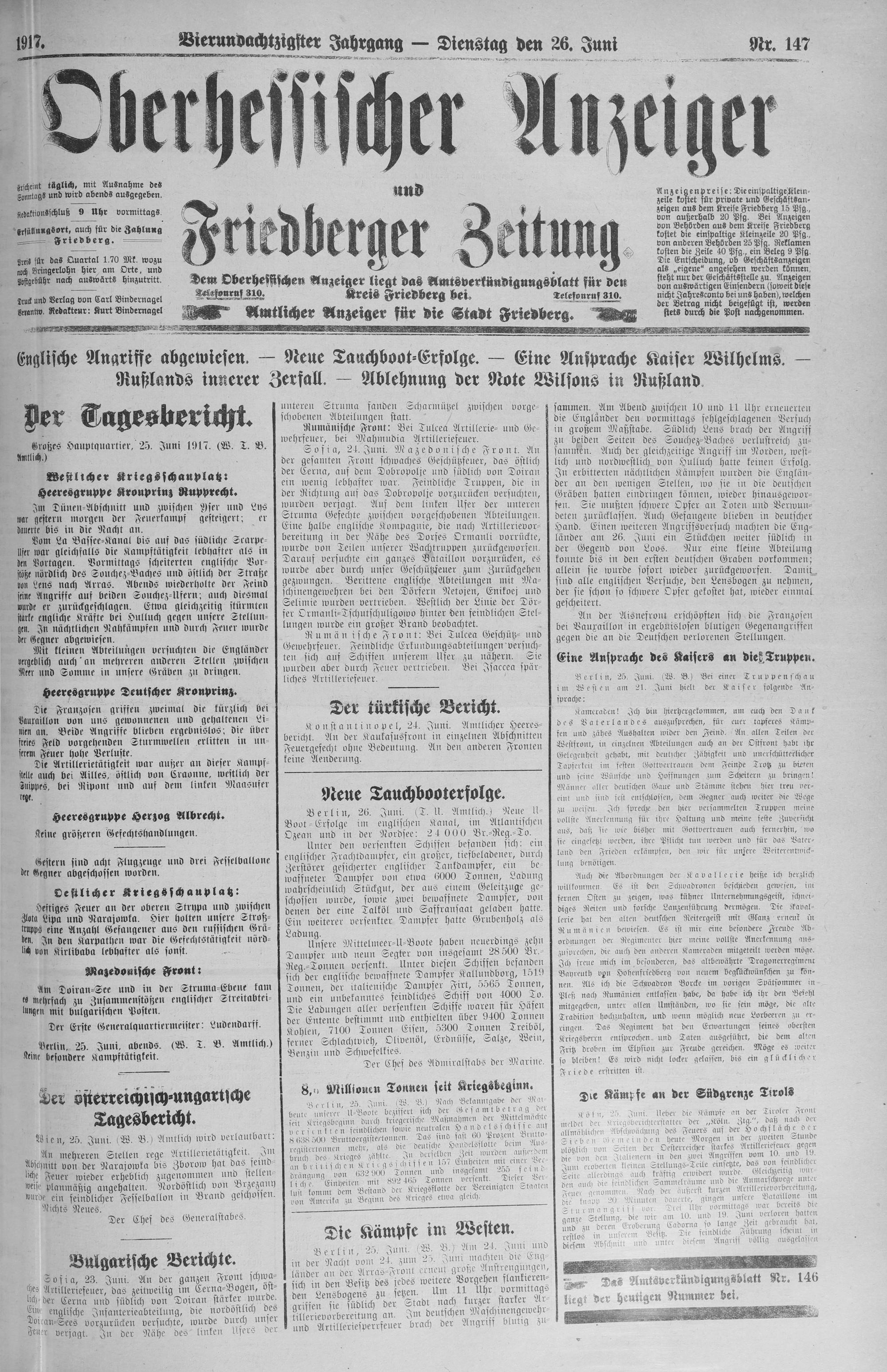 Oberhessischer Anzeiger. 1899-1933