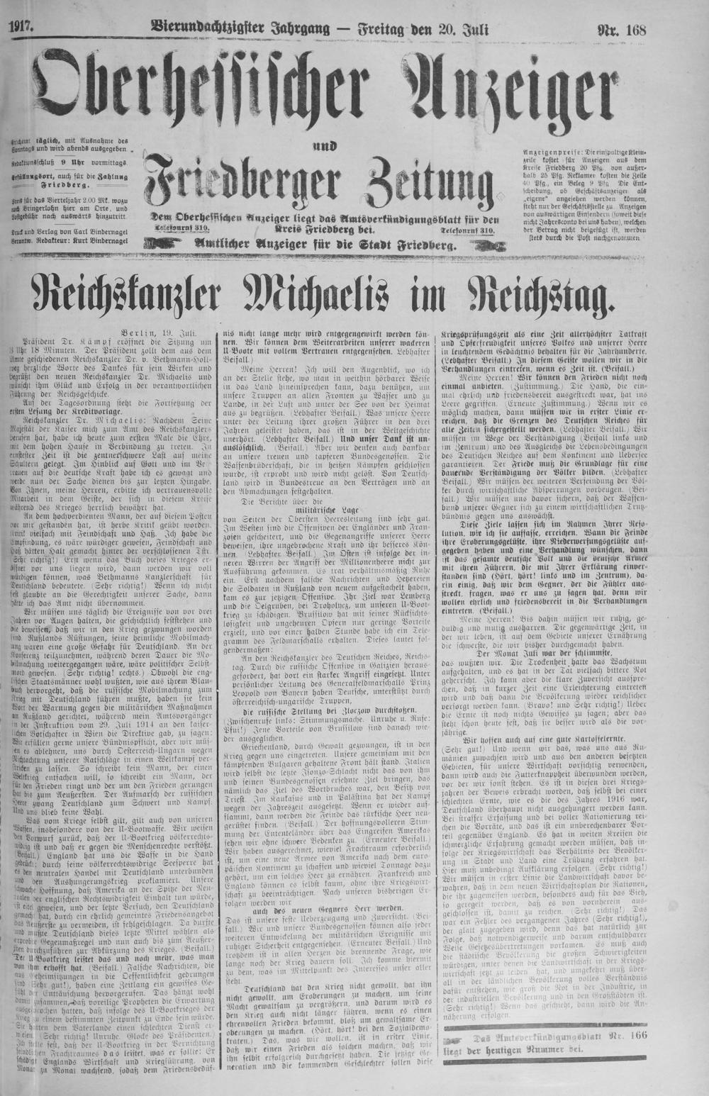 Oberhessischer Anzeiger. 1899-1933