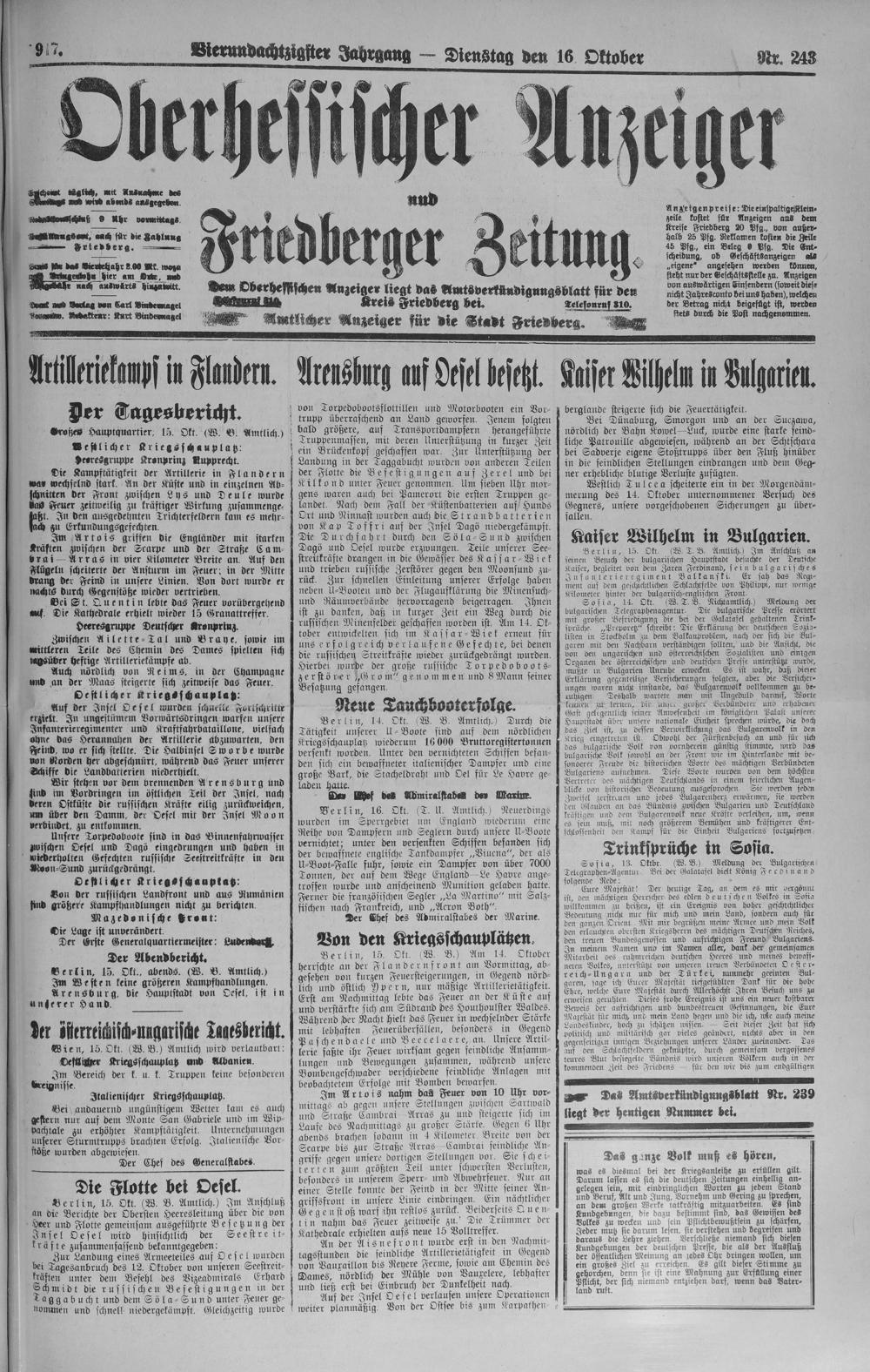 Oberhessischer Anzeiger. 1899-1933