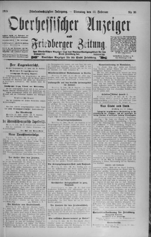 Oberhessischer Anzeiger. 1899-1933