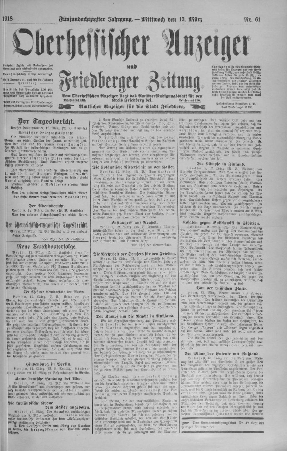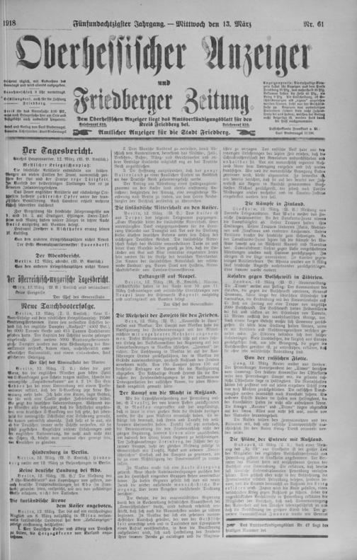 Oberhessischer Anzeiger. 1899-1933