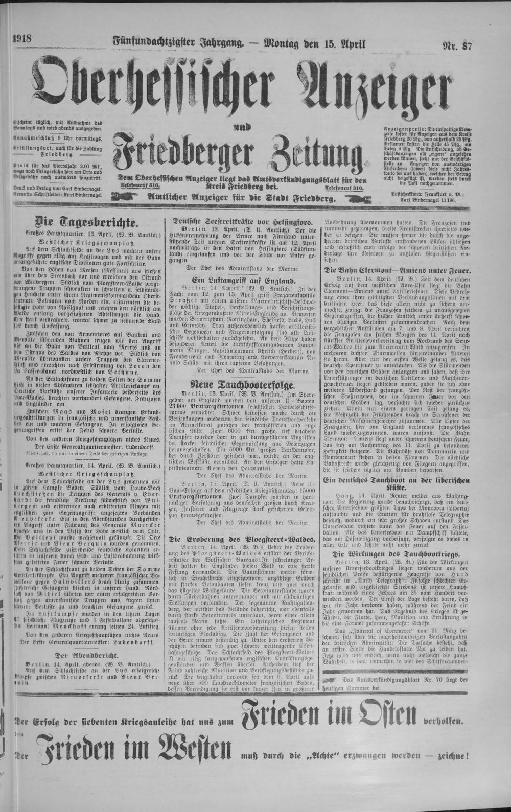 Oberhessischer Anzeiger. 1899-1933