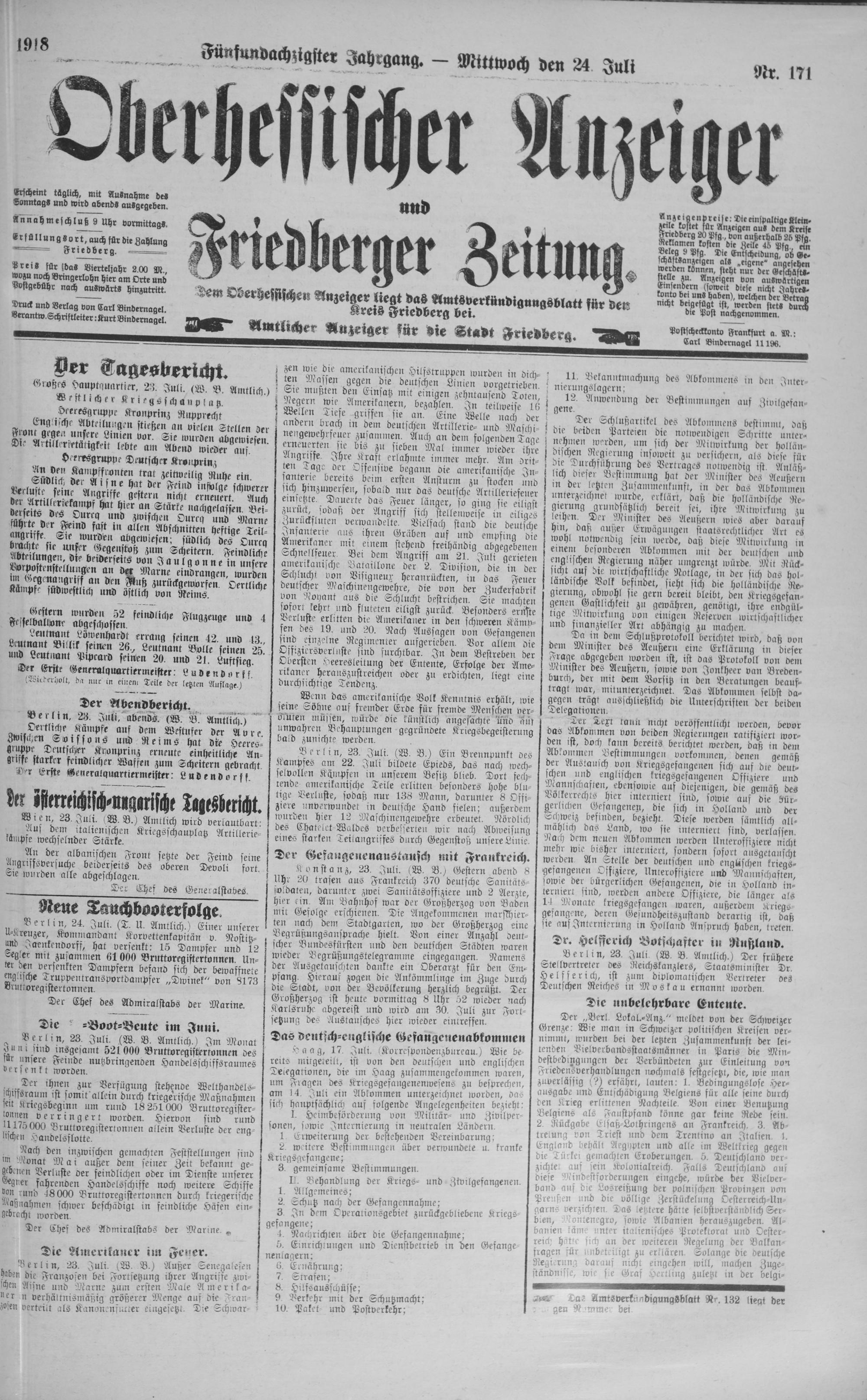 Oberhessischer Anzeiger. 1899-1933