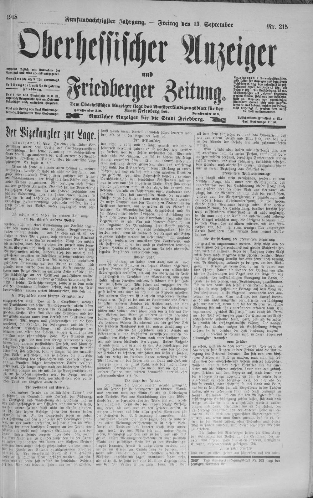 Oberhessischer Anzeiger. 1899-1933