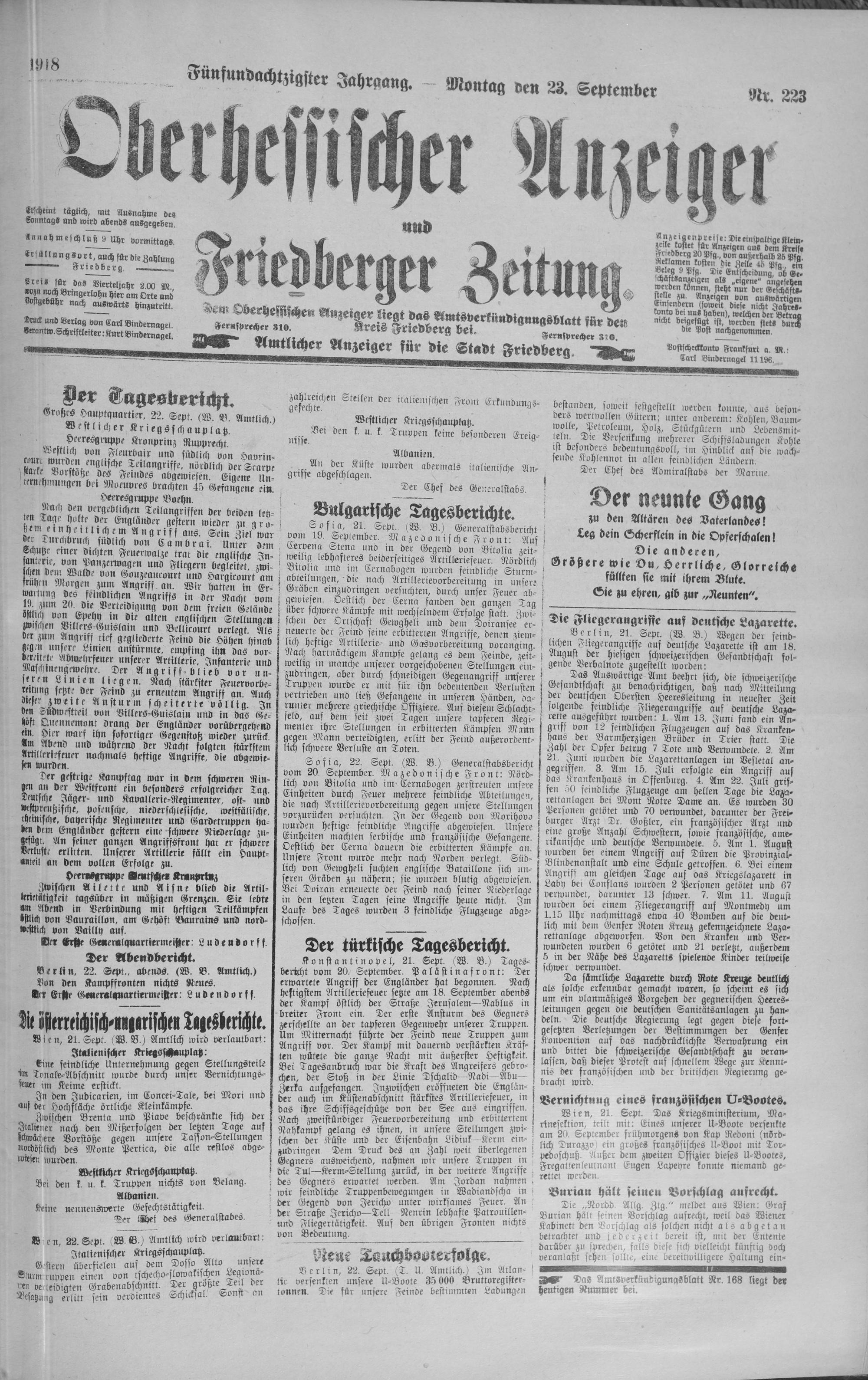 Oberhessischer Anzeiger. 1899-1933