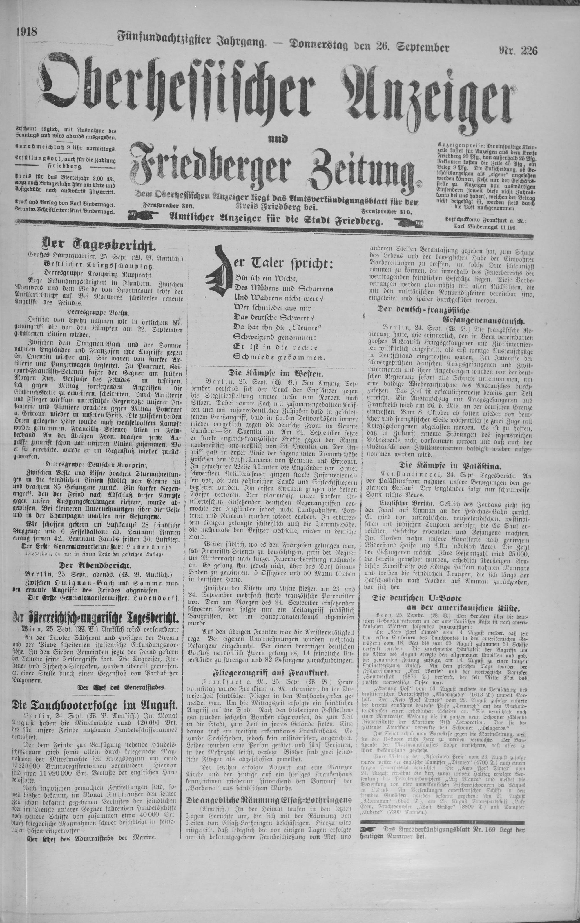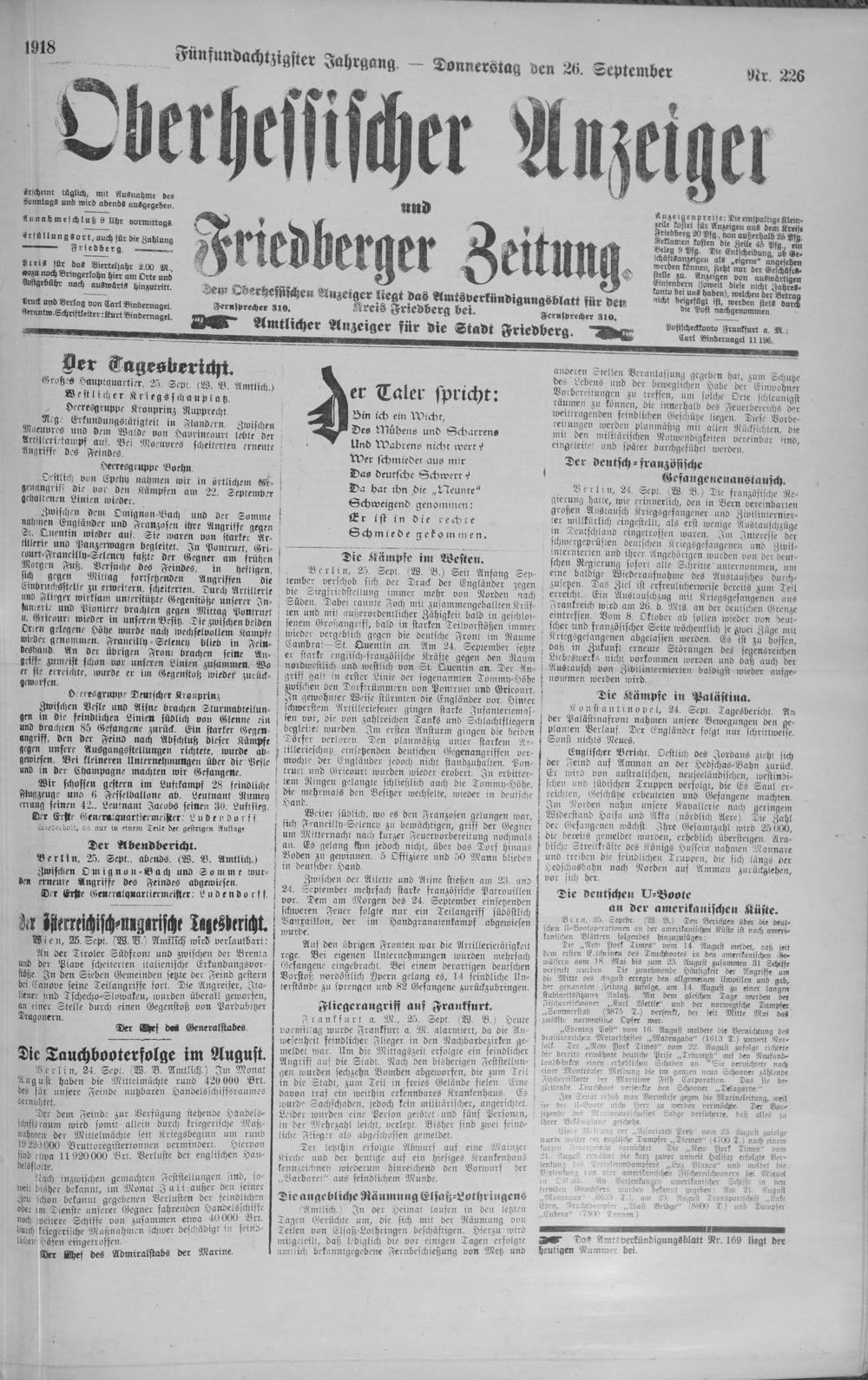 Oberhessischer Anzeiger. 1899-1933