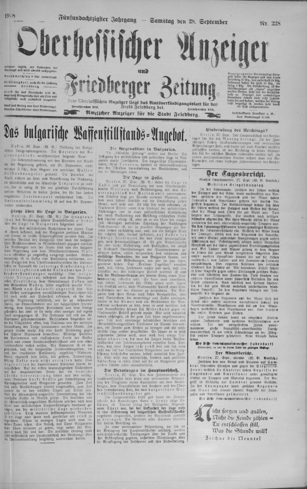 Oberhessischer Anzeiger. 1899-1933