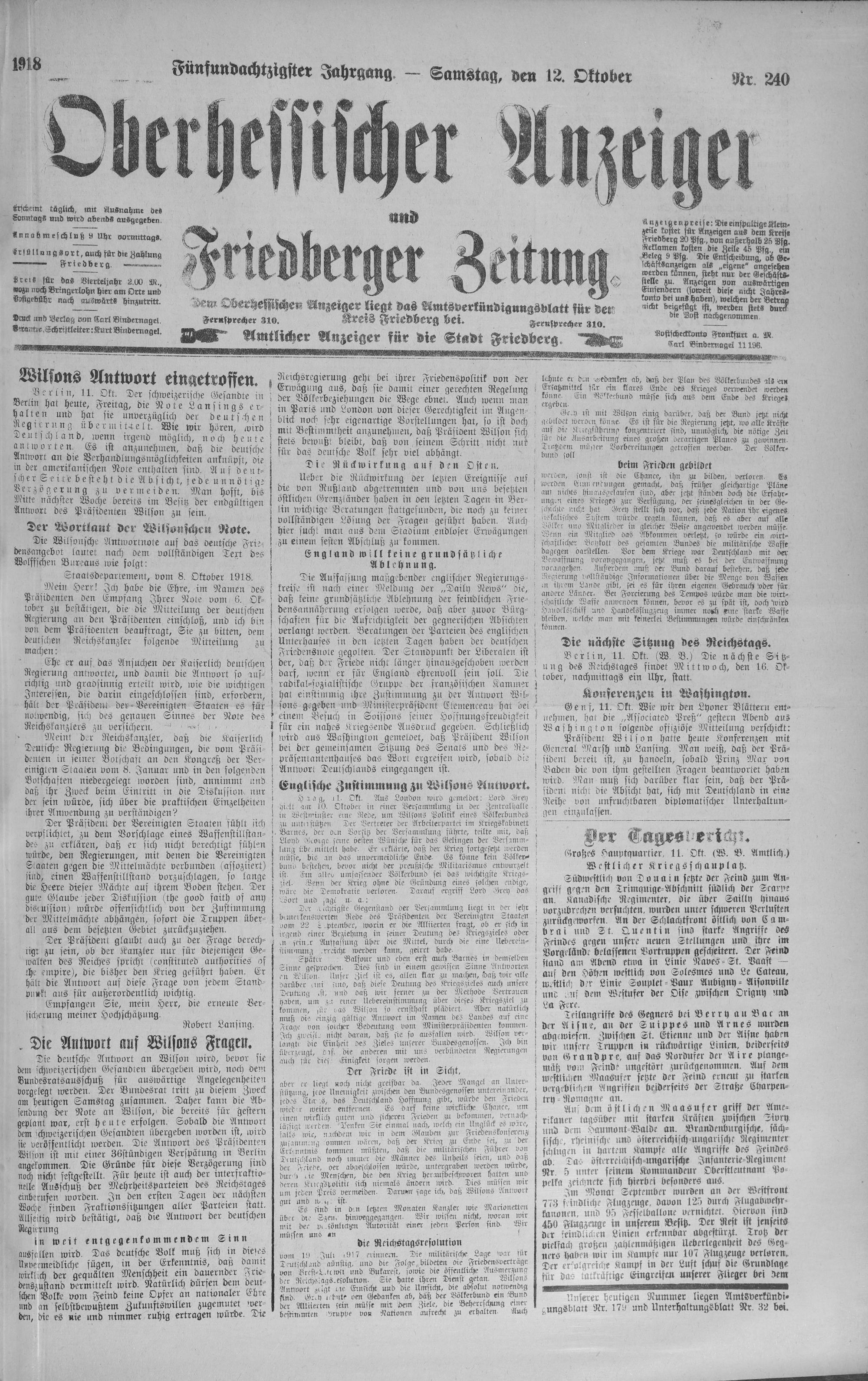 Oberhessischer Anzeiger. 1899-1933