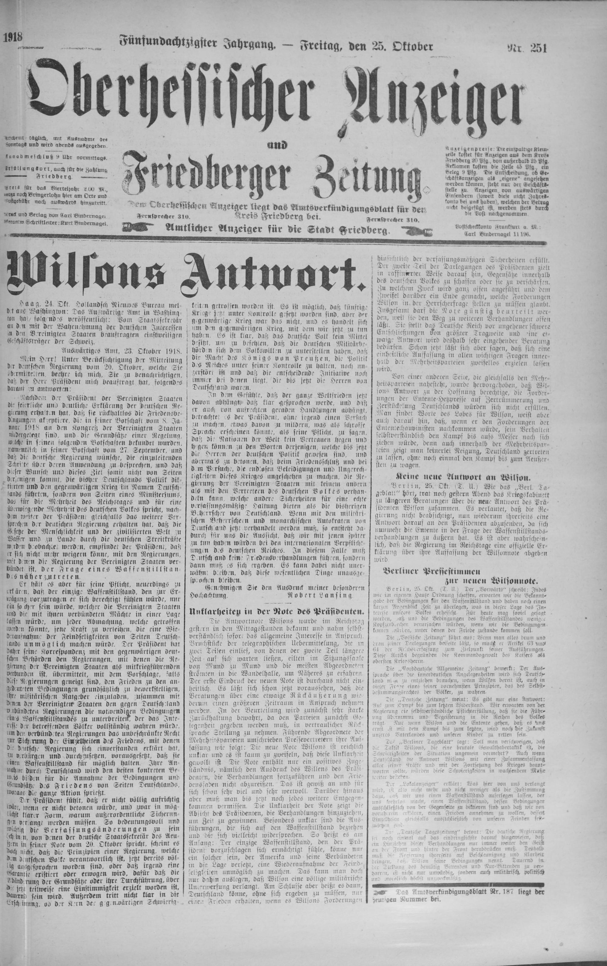 Oberhessischer Anzeiger. 1899-1933