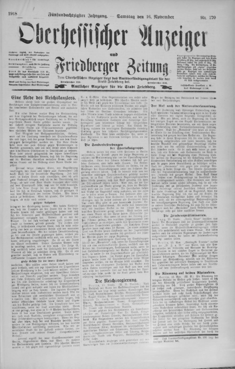 Oberhessischer Anzeiger. 1899-1933