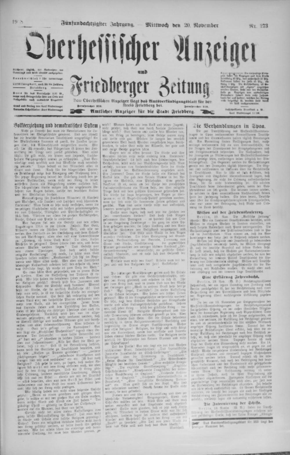 Oberhessischer Anzeiger. 1899-1933