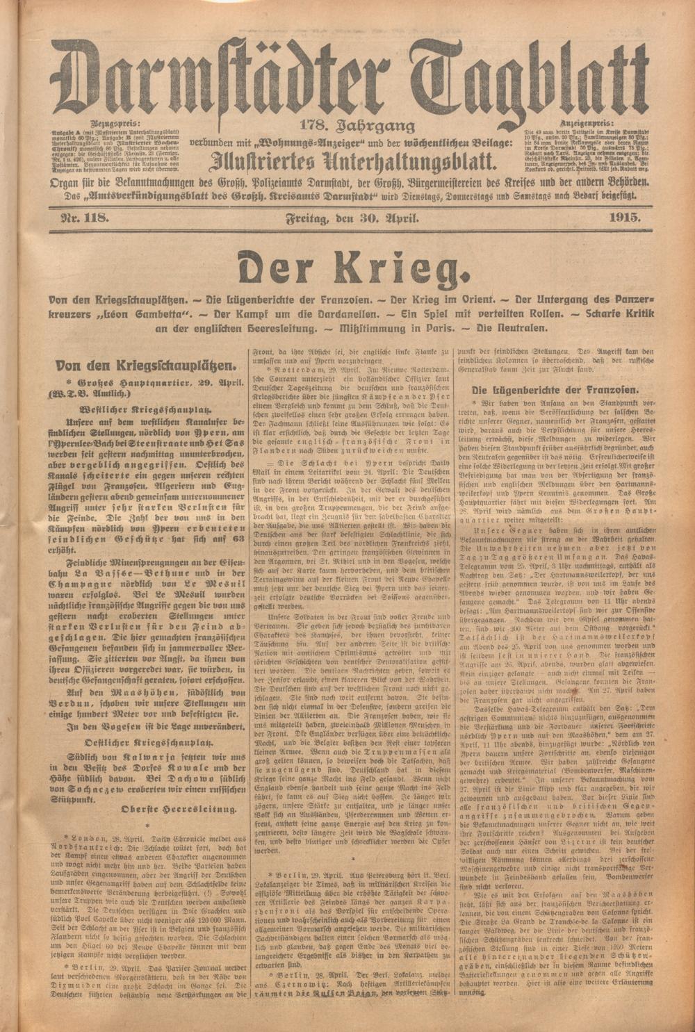Der Erste Weltkrieg im Spiegel hessischer Regionalzeitungen
